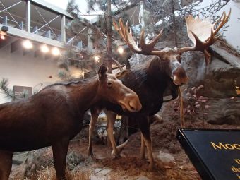 紅葉ハイクの帰り、ビジターセンターに立ち寄った。とても立派な施設でアルゴンキンの歴史や自然・動物の生態などについてたくさんの展示があった。 ムース 説明で聞いてはいたがその巨大さに驚く ここでは熊はどこにでもいるらしい オオカミは貴重だとか 動物の剥製現地ガイドのSさんがかってここの職員だったらしくて、通常では見られないスタッフオンリーの地下にも潜入して裏側も案内してもらった。 小鳥の剥製 蝶の標本 ムースの角 すごく大きく重かった