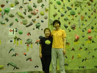 10月10日、超久し振りに岳友のこいのぼりさんとランナウトでクライミングした。最後に会ったのはいつでどこの岩場だったろうと記憶をたどらねばならないほどだった。彼女はコンスタントに昇っているので昇る姿も自然で滑らか、クライミングが体に染みこんでいる。私は前回よりはましだがまだ筋力がなく体も硬いため、思い切ったムーブができない。絶対このホールドを取ってやるというだけのモティべーションもまだ湧かない。再会を喜びあい、お互いの情報交換をしながら、二人で楽しく練習できた。後半は彼女がリードしたルートを私がトップロープで昇るというパターンで易しいルートをたくさん昇った。体が大分自然に使えるようになり、やっとスタート台に立てたような気がする。 山谷コンビ!!