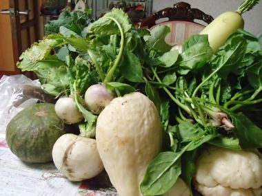 久し振りに茨城に住む義妹夫婦が我が家を訪れ、また新鮮な野菜をたくさん頂いた。大根、ジャガイモ、隼人瓜、ほうれん草、蕪、青菜、サツマイモ、南瓜などすべて無農薬だ。 野菜だけでなく手作りのお寿司、大学芋、干し芋、なます、義兄が毎日寒い湖で釣り上げたわかさぎのフライ・カツなど手作りの料理もどっさりもらって、有り難いことこの上ない。おかげで昨日は一日中頂いた料理だけで食事を賄えたので超楽だった。今日は青菜類をすべて茹でて保存し、ほうれん草の白和えを作った。ほうれん草がやわらかくとてもおいしかった。