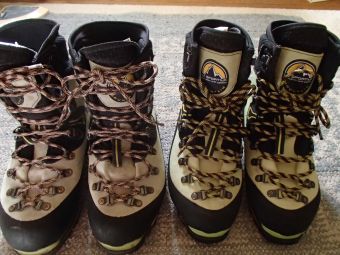 大散財した。登山靴を買ったのである。そもそもはアイスアイゼンが氷瀑で外れて酷い目にあったので前の部分に金具を取り付けて防止しようと登山用品店に行ったことから始まる。名物オーナーが靴とアイゼンのサイズを調整し、金具を取り付けてくれたのだが、何か感じるものがあったのだろう。「この靴履いてみて!」とこれまでより2サイズ小さい靴を出してきた。履いてみるとかかとがぴったり、横幅がきつい。こんな大きな靴履いてよく氷登ったね。これじゃ長靴状態、かかとに隙間が出来て、アイスクライミングはとても出来ないよ。7年間も履いてきたって?7年分損したね」と言われてがっくり。この靴でアコンカグア、モンブランなど世界の名峰を登り、国内の雪山アルパインもアイスもこの靴でやってきたのに!!。高価な靴なのですごく悩んだが一度ぴったりの靴を履いてしまうともう元には戻れない。清水の舞台から飛び降りた。きつい横幅の調整が終わって、本日宅配便で届いた。 SPORTIVA(スポルティバ) ネパール エボ GTX 左38サイズ 右36サイズこれ以外にもかかとがぴったりの靴下、ダウンなどを圧縮して収納できるコンプレッションバッグ、高機能の物入れなど何点か買ってしまった。締めて92000円!!この前の手袋と合わせるとほぼ120000円!!何という身の程しらずの大散財!!こんなことをしたからにはもう何があろうと止められない、撤退できない。この散財に見合うだけの成果をあげて元をとらなきゃという気になった。最後には運動能力やモティべーションや夢の達成などではなく、お金がものを言ったというのが我ながらおかしい!!。