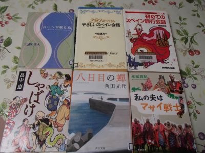 新年になって始めて図書館に出かけた。頭が鈍くなっていることを考え、集中力があまり要らず読みやすい本を探した。実用本以外は好きな女性作家ばかりになった。重い物を持つのも億劫なので小さな文庫本ばかりだ。一挙に老女モードに陥っている。 ☆福島教隆 初めてのスペイン旅行会話 ☆中山 直次 250語でできるやさしいスペイン会話 ☆永松 真紀 私の夫はマサイ戦士 ☆畠中 恵 しゃばけ ☆角田 光代 八日目の蝉 ☆三浦 しをん 白いへび眠る島 さあ、どれから読むか?