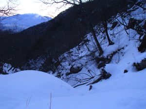 1月19日から2日間アイスクライミングに出かけた。初日は予定どおり甲府から山奥に入った千波の滝がねらい。前情報では結氷状態が微妙ということだったが実際に行ってみないと決定できない。小一時間登ると落葉樹の向こうに見事な氷瀑がみえたので心弾ませて近くまで行ったが、滝が繋がってなかったり薄かったりして昇れないという判断になった。やはりね。残念!!。この滝は毎年登攀期間が大変短くて昇れないことが多いという定評がある。また来年だ。 甲府郊外 千波の滝すぐ転戦して次は芦安エリアに移動。雪道を登り、渡渉をくり返し、堰堤をいくつも過ぎると右岸にトリコルネが現れる。少し色が薄くて固くは結氷してないが昇るに支障はない。氷はやわらかく水も流れたりしてアックスはすごく刺さりやすい。苦労せず抜け口まで昇り、肩慣らしにぴったりだった。 芦安 トリコルネ次は更に雪道を登り詰めてカモシカルンゼに行く。高度が上がっている分、結氷状態は良く安定感がある。3ピッチのマルチアイスである。昇り始めの1Pは楽に昇れ、2P目も楽だったが、最後の3Pが核心だった。短いのだが垂直で左手が切れていて岩が露出している。しかし案ずるより産むが易し、現場に行って岩に左足を開いてバランスをとったら苦労せず昇れた。抜け口が氷ではなく岩か土だったのでアックスを叩きこまないよう注意した。 芦安 カモシカルンゼ次第に夕暮れが迫ってきて懸垂下降して地面に降り立ったら薄暗くなっていた。今日は千波の滝からここに転戦したため、午前中移動ばかりだったから止むを得ない。ヘッドランプをつけてガンガン飛ばして下山した。1日どこも貸切状態だったので余計な神経使わず昇れて楽しめた。