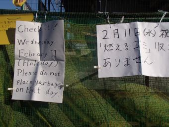 今日は午後、穏やかな日よりだったのでいつものウォーキングをしていた。するとゴミステーションで珍しいものを見つけた。 明日は祝日でゴミの収集が無いのでゴミを置くなと日本語と英語で書いた紙がぶら下がっている。この辺りは全く地元の皆さんが居住しているエリアだと思っていたので、この張り紙は意外だった。確かに外国の人には日本のゴミ収集システムはわかりにくいだろうな。なかなか粋で賢い人がいるものだと感心した。