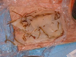 1日目荒川出合い野呂川発電所付近にテントを張った。2ルンゼから降りて夜は夢ブラの前夜祭になった。宮田さんがたくさんの美味しい食品を持って来て下さっていて感激した。 鯛の昆布締め 柚子と大根の漬け物 赤巻き 合鴨肉 合鴨鍋 富山名物の鯛の昆布締めにサスの昆布締め、のの字の形が可愛い赤巻き、合い鴨肉、地鶏の肉、鶏肉ハンバーグ、柚子大根の漬け物、薬味として山椒(これがすごく高級感を生み出した)などなど。それらをKガイドが調理して私は上げ膳・据え膳で食べるだけ。何という幸せ!!。暗くなるまで楽しく尽きない話題で盛り上がり、テントー泊ならではのかけがえのない楽しい時間になった。 飲み食べ話が尽きない一夜