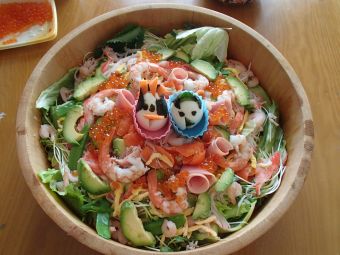 2月19日、同じ市に住んでいて年賀状の行き来はあったものの、会うチャンスが無かった友の家を訪問し、15年ぶり位に再会した。リビングに入るとまずドーンと豪快な海鮮ちらし寿司が目に入った。すごい!!いくら、海老がふんだんにちりばめられている上に大好きなアボガド、錦糸卵、レタス、ハム、かいわれなどが寿司飯が見えないほど豪勢に乗せられている。中央には可愛いお雛さまが鎮座している。 病院の検査の関係で昨夜から固形物を摂ってなかった私は遠慮無く皿に取った。美味しくて更に食べ、止まらなくなった。プチプチのいくら、茹でてなおふっくらした大ぶりの海老、大胆に大きく切ったアボガド、何もかもが豪快で好きな物のオンパレードだ。この際コレステロールなんてことは忘れた。恥ずかしい位夢中でご馳走になった。鶏肉と大根の煮込み、サラダ、色鮮やかな手まり麩のお吸い物もご馳走になった。彼女の手作りの料理を頂きながら、たくさん話をした。何しろ15年前位に同じ職場で仕事をして以来の再会だから話題が尽きない。仕事、家族、マラソン、旅行、孫の成長など共通の話題が多くて目一杯しゃべり、共感することが多かった。彼女は私より5歳若いが、年令を感じさせないパワー、公私にわたるアグレッシブな生き方は以前と変わっていない。ジムでトレーニングを欠かさず、マラソンもするだけあって体が筋肉質で引き締まっている。おおいに刺激された。