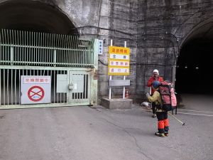 今季のアイスクライミングの集大成として荒川出合いの夢のブライダルベール登攀めざして前泊1泊2日で出発した。今回も穂高岳山荘の管理人で映像作家の宮田八郎さんとご一緒でとても心強かった。23日は韮崎に前泊、24日朝6時、車で奈良田方面に向かい、発電所前からまず開始前の核心と聞いていたゲート越え。「こ、この高い鉄格子をザック背負って越えるの!?そりゃ、私には無理よ」でも案ずるより生むが易し、高い槍のような鉄格子の下部に小さなドアが付いていて、ノブを回すとあっけなく開いて人が通るには十分な空間が広がり、その先は開運隧道というめでたい名前の長いトンネルだった。 開運隧道からは林道歩き10Km、長短幾つものトンネルを通りぬけ緩やかな坂道をたどる。道路に雪や氷はあるもののうららかな陽気で春先のハイキングの雰囲気だった。こんなに温かくてこの先氷瀑があるのだろうかと不安ではあった。最後の新鷲住トンネルは1Km余りあり、真っ暗な中、ヘッデンをつけて黙々と歩き、2時間余で荒川出合い野呂川発電所前に到着した。テント設営を見ながら正面を仰ぐと茶色のデブリのこぶこぶが延々と続く急坂の先に二筋の滝が見える。まずはアップとして今日はこの2ルンゼ本流大滝を昇る。 除雪された林道と鷲住山 荒川出合い2ルンゼ正面大滝 平地で快適なテント場あそこまで登らないと氷爆には取り付けないのかと雪の急坂登りに疲れそうな予感がした。装備を調えてスタート。予想通り取り付きまで一苦労。白い雪を踏むと落とし穴に入って腰まで埋まってしまい、抜け出るのに四苦八苦した。結局不安定でもデブリの上を登るのが落とし穴に落ちない方法だと納得し、こつこつと登る。やっと着いた取り付きは安定した場所が無く、ザックなどを氷面にビレイして昇り始める。テント場から見ると立っているようにみえたが、間近でみると結構段々状になっていて氷はかなり緩んでいた。部分的に立っている部分もあったが、楽に昇れた。2ピッチ目は更に氷が融けてもうシャーベット状になってぼけていた。 大滝第一ピッチ 快適に昇る 高度感たっぷり 2ピッチ終了点まで昇り、これ以上昇る意味もないから降りようということになり下降。しかしこの下降が問題だった。軟らかくなっている氷にアバラコフなのでこの氷で大丈夫かと心配で静かに静かに懸垂下降した。軟氷の次は直径15センチほどの枯れ木の支点、それも多少不安ではあったが、あの軟弱な氷よりはましという気はした。 無事取り付きに着地し、またデブリを下ってテント場に帰還。1日目が無事終了したものの、2ルンゼがああいう状態だとすると、3ルンゼの夢ブラも氷が上までつながっているだろうかという心配が浮上してきた。でもそれは自然のなせる技だからあれこれ悩んでも仕方がないと3人で豪華夕食を存分に楽しんで7時にシュラフに入った。