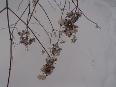雪の大谷不動エリアに三日間滞在してちょっと珍しいものに出会った。まずは樹林の中で見つけた凍ったアジサイ。色は白と灰色で花びらや枝はそのままの形を保っている。侘び寂びの世界を感じた。 次は崖の窪みを活かして作られていたちっちゃな祠。こんな所にも祈る心が現れている。そして雪が面白い形に降り積んだ大木。風向きの関係で雪が落ちなかったのだろう。テント場のすぐ近くにあって毎日見ていた。