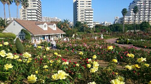 ここのところ、毎日秋晴れの爽やかな天気が続く。谷津バラ園の秋バラが満開という情報を得て、仕事も休みの今日は午後、秋バラを見にいった。春バラほどの数と勢いはないけど、予想よりたくさん咲いていた。秋バラは香りが高いと言われるが、入り口からすでに馥郁たる香りが漂ってきて高貴な気分を味わった。平日だがけっこうな人達が園内を廻っていて賑わっていた。 剱弁高芯咲きの大輪や中輪房咲きの種類は沢山咲いていたが、つるバラはほとんど見られなかった。エンジェルフェイスも見事に咲いていて嬉しかった。