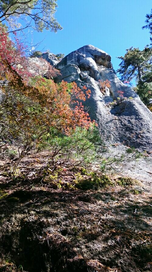 10月3日親しいクライミング仲間と小川山はソラマメスラブに繰り出して一日自由なクライミングを満喫した。参加者はIさん、Tさん夫妻に初参加のOさんと私の5人。八王子6時10分集合でIさんの車で廻り目平着9時。すでに駐車場は9割かた埋まっていた。絶好の晴天で湿度が低くて空気は爽やか、乾いた岩と色づき始めた紅葉の中で気心のわかった皆さんとのクライミングは最高に楽しく、癒された。IさんとTさんがリードして張って頂いたルートをトップロープで昇り、たまにはリードもした。この所クラックばかり昇っていたのでドスラブに体重を乗せるのがぎごちなかった。スラブに馴れて安心して体重を乗せられるようになったのは終わり頃だった!! ソラマメ ソラマメハング I さん S さん K さん色づき始めた黄葉が真っ青な空に輝き、白い岩とも対比してこの上ない快適なクライミング日和で、この秋一番の至福の一日になった。