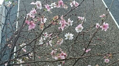 放浪の達人さんやVeryBerryさんのブログで狂い咲きや勘違いの花が話題になっている。本来の季節ではない時に咲く花のことだ。ウォーキング出勤で脇を通る民家の庭先に十月桜が咲いていることを思い出し、改めて写真を撮りにいった。小さな花で花びらの色も淡く、ひっそりと曇り空の中で咲いていた。春の匂い立つような艶や色彩はなく儚げな雰囲気だ。いかにも本来のシーズンを離れて咲いている日陰者(?)という感じもする。でもかえってその風情が愛しいのかもしれない。
