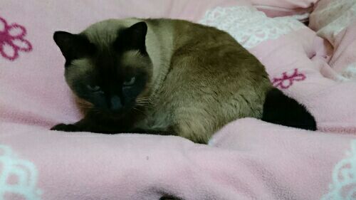 3月半ばから娘が連れてきた猫二匹と暮らしている。キヨとハルと名付けられた猫たちも我が家の生活に馴染んで気ままに暮らしているように見える。キヨは壮年期、ハルは老婆だという。若いキヨは最近咳をしたり下痢をしたりして動物病院に二度かかった。娘は何もできないので、私が薬を飲ませたり餌をやったりしているのだが、薬を飲ませるのが大変だ。柔らかい餌に薬を混ぜて飲ませるのは手間がかかるだけでまだよかったが、錠剤をキヨの口をあけて飲ませるのにとても手こずった。嫌がって暴れるし、足の爪でひっかれそうになったり、牙で噛みつかれそうになったりした。小さくても肉食動物だ。娘の部屋は猫グッズでいっぱいだ。爪とぎ板、トイレ、水呑み場、食事場、玩具、遊べるように段差を付けた家具、くるまってやすむ籐の箱、毛布等々・・・・。こんなにするの?という感じなのだが、家族同様に思っている娘からすれば当然なのだろう。この猫たちの最後を看取らねばならないのはすごく大変な気がする。それより先に自分が看取られるかも。 毛づくろいするキヨ