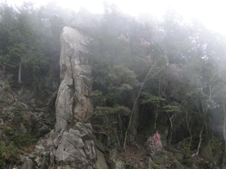 4月20日名古屋を早朝4時にレンタカーで出発し、湯の山温泉で同行のYさんと落ち合って一路、御在所岳に向かう。登山口に駐車して、山道を45分ほど登ると藤内小屋に到着。モンベルハウスという別棟に不用品をデポして、御在所岳に向かう。ここは全く初めての山域なので何もかもが珍しい。沢にそって少し登ると山肌にピンクと白の花がたくさん咲いている。ピンクはアケボノツツジ、白はコブシだ。アケボノツツジは奥多摩辺りで咲いているミツバツツジと花の色は同じだが花びらの可憐さが抜群だ。コブシもここのは純白で点点と咲いて目に染みる。 アケボノツツジしばらく登ると急な岩だらけの登道になり、中尾根の取りつきに到着。当初は前尾根から登る予定だったが明日の天気が悪いのでまず中尾根と中尾根バットレスを昇るように変更したのだ。 中尾根と中尾根バットレス中尾根は全7ピッチ、途中で崩壊したピッチがあってそこ数メートルだけはアブミを使った人工登攀で登った。久しぶりのアブミでやや緊張したが、短かったので何とかこなせた。どのピッチも何かしら簡単にはいかない部分があって面白かった。朝のうちはお日様が降り注いで温かい日が始まると思ったのに、実際は冷たい風が吹き抜け、一日中日陰ですごく寒かった。ヤッケを着てもビレイ中はガタガタ震える有様で芯から冷えた。 中尾根終了点にて 豪快な懸垂下降 中尾根バットレス何とか中尾根を終了点まで登攀し、懸垂下降で取りつきに着地。しばしレストして時間がないのですぐに中尾根バットレスに取りつく。日本一大きいと言われる滑り台があって遠くからでもはっきり目に入る。巨大なスラブの海だ。スラブは比較的得意分野なのであまり緊張しないですんだ。カリフォルニアドリーミングという素敵なネーミングのルートなのだが、いかんせんフリースを着こんでも寒くてとてもカリフォルニアの雰囲気ではなかった。全3ピッチ、楽しく昇って充実した一日目が無事終了した。 同行のYさんと