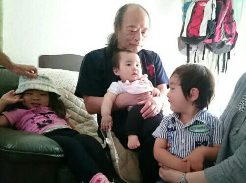 5月22日娘たち一家が房総方面にいちご狩りに行った帰りに急遽、我が家に立ち寄ってくれた。予期せぬ元気いっぱいの孫たちの訪問に沈みがちの我が家は一挙に明るくなった。三人とも長旅の疲れもみせず、とても活発だった。よどんだ空気が生き生きと流れた。葵ちゃんはさらにお姉さんになり、体も筋肉がついてシッカリしてきていた。翔くんはまさにエネルギーの塊で始めは少し遠慮していたものの、すぐに本領発揮して息子と楽しく遊んでいた。結ちゃんだけがおっとりして一人でニコニコしていた。本当にこの子を見ると癒される。猫がいるというので2階に上がって猫と対面。猫にとってみれば正に巨大な怪獣の出現に清は適応していたが、春はおびえてカーテンの陰に隠れてしまった!!。デリケートなんだ。 元気いっぱいの孫たちに年寄りはタジタジ おそるおそる清をなでる葵ちゃんジュースを飲んだりアイスを食べたりして、小一時間楽しく遊んで孫台風は機嫌よく去っていった。