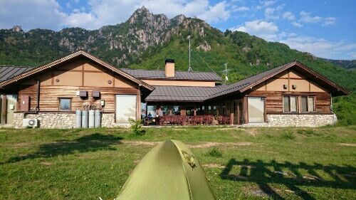 熊の岩でクラックトレーニングした後、瑞牆山植樹祭公園でテント泊した。月曜日だったせいだろうか、あの広い草原の中にテントは3張しかなかった。天気が良くて夕方になっても十一面の岩峰がくっきりと見え、湿度が低くて風は爽やか、人も少ないからとても静かで最高だった。紫色のトウゴクミツバツツジと赤い山ツツジ、オレンジ色の木蓮華ツツジも咲いていてまるでツツジの競演だった。それに加えてシャクナゲも咲いていた。ここでこんなに花が咲いているのを初めて見た。 瑞牆山十一面正面壁・公園施設・マイテント 朝の光の中の十一面とツツジの競演 木組のテーブルで一人夕食を作った。今日のメニューは肉野菜鍋。材料は豚肉100gに卵2個・ミニ豆腐に野菜を入れ、味噌で味付けした。一昨日の昇仙峡で筋肉疲労して上腕がずっと重いのでしっかり栄養摂らないと明日のマルチが辛くなると思ったからだ。かなりの量だったがガンガン食べてタンパク質を十分に補給した。 特製タンパク質強化鍋夕食を済ますともうすることがない。眼鏡を忘れてきたので明日のマルチのトポも本もスマホも何も見えず結局8時にシュラフに入った。山間部の夜の闇は深い。静かな夜が過ぎていった。