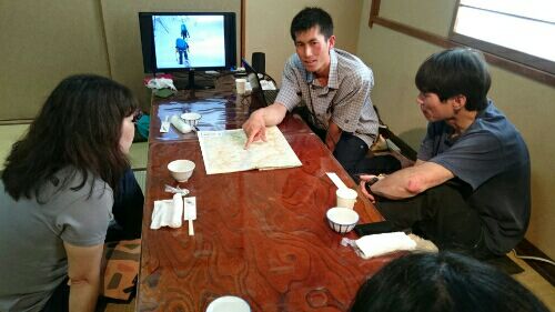 昇仙峡でワイドクラックの練習をした後は、山宮温泉に立ち寄り、温泉に入ってさっぱりし、食事をしながら佐藤さんの黒部横断のスライドショーを見せて頂いた。この冬、32日間に渡って黒部エリアを3人で縦断した記録である。時折、FBで様子を見てはいたが、実際の画像をみるとさすがに凄まじかった。 地図を示しながら説明する佐藤さん 山宮温泉 今日は栄養補充に生姜焼き定食を頂きました何しろ厳冬期に32日間も黒部にテント泊しながら困難な壁を登ろうとするのである。鹿島槍から入山して十字狭から渡渉してゴールデンピラーと名付けた雪壁を登攀し、最後に剣岳山頂を踏んで3人無事下山した。背負うザックが40キロ、肉5キロとか、普通の人とは別次元の山行でただただ驚いて見ていた。剱の幻の大滝などが画像に映し出され、厳冬期でも水流が激しく水量も多いので氷結しないのだという。あたり一面の雪の中、滝しぶきが勢いよく上がっていたのがとても印象に残った。気温マイナス2度の中、上半身裸になったり全裸で渡渉する場面があり、ちょっと笑えた。 画像は佐藤さんのHPより貴重な画像を見、行った人にしかできない説明を聞いてチャレンジする若者たちを心から尊敬した。