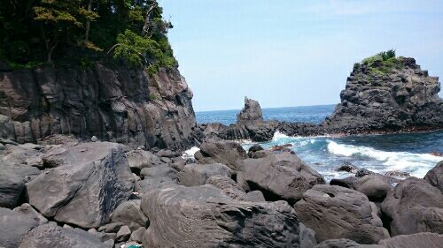 5月15日超久しぶりに城ヶ崎にクライミングに行った。前回来たのが何時だったか思い出せない。今回はインストラクターのTさん、親友のご主人のSさんと私の3人である。一般的には城ヶ崎のシーズンは終わったのだろう、1日中、私たち3人だけで誰も来ない。打ち寄せる波の音だけが響き、日差しは強いものの風が程よく吹くので快適な環境で貸し切りのフナムシロックで昇った。 始めは焼酎の名前が並んでいる易しいルートを4本昇って肩慣らし、午後はパープルシャドウ、フラッシュダンスなど4本を昇った。パープルシャドウが染み出しで濡れていてとても驚いた。手を置きたい処が全部ぬれていたので苦戦した。また滅多に 練習するチャンスがないワイドクラックも練習できて勉強になった。背中を一方の壁に当ててズリズリと尺取虫のように体を上げていくのだが、理屈は理解していても現場ではなかなか思うように尺取虫になれず、芋虫のようになっていた。 とても落ち着いて昇れてよかったが、又してもクライミングシューズが合わず後半は足の痛みに気を取られクライミングは二の次になって難儀した。前回の丹沢でも足が痛くて泣きをみたが、最近どうも足がむくんでいるような気がしてならない。