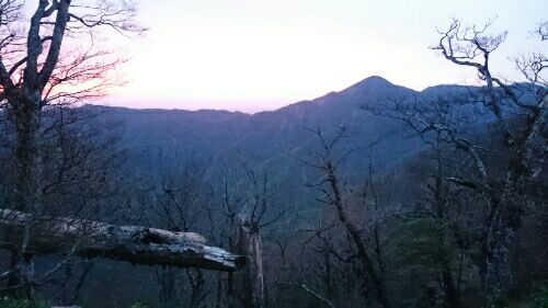 翌日5月6日、今日はどのルートに行こうかとしばし悩んだが、天気が下り坂なのとバス便の便利さを考えて西から東へ丹沢の名峰を縦走して大倉へ下山することにした。朝、5時20分青ヶ岳山荘を出発。蛭ヶ岳の後から真っ赤な雲が広がり極め付きの日の出風景だった。でも今日天気が良かったのはここまで。その後は薄曇りですっきり晴れない中、先ずは臼が岳に向かう。 朝焼け臼ヶ岳までは遠くて登りもきつく朝一の慣れない体にはこたえた。檜洞辺りかみる蛭ヶ岳は堂々として威圧的である。でも実際はどこにあるのか存在が薄い臼ヶ岳までのほうがハードでその先の蛭ヶ岳への登りのほうが楽だった。 堂々とした蛭ヶ岳蛭ヶ岳から見る富士山はいつでも端正で気持ちを落ち着かせてくれる。今回はその前に昨日踏んだ同角山稜などの稜線がまるで富士山の縁取りのようなラインをなしていて自分の軌跡を確認できて楽しかった。 蛭ヶ岳からの秀麗富士と同角の頭朝食がおでんで腹持ちするものが何もなかったので小屋前の広場で少し食べてお腹をなだめたら、次の丹沢山に向かって出発した。この稜線はすこぶる気持ちのよい尾根歩きだった。起伏が少なくて穏やか上、草原状で峰桜があちこちにあでやかに咲いていて素晴らしかった。楽しく歩いて丹沢山に到着。これまで行きかう登山者は数人だったがここに来て俄然人が多くなった。さすがはメインルートの中心峰である。丹沢山にてここでも富士山を見てしばし寛いだあとは、最後の峰になる塔ノ岳目指して小一時間の稜線歩き。この道は距離が短く更に楽しかった。最後の一登りで塔ノ岳に到着。ここは丹沢山よりもっとたくさんの登山者で賑わっていた。尊仏山荘に入ってコーヒーを呑んだ。この二日間インスタントコーヒーすら呑めない環境だったのでやっとカフェインにありついた。 風が出て天気は早くも下り坂あとはひたすら大倉目指して下山するだけで気楽な道中のはずが予想外の厳しいものになった。4月末の御在所でしたたか打ち付けた左膝が下山になると痛み始め、さらに靴がぴったりしすぎてこれもまた下りでどんどん前に詰まって足指が痛い。二種類の痛みに耐えながら歩かねばならなくなり、急激にスピードが落ちた。さらに天気の崩れが早く、雨もポツポツ落ちてきて次第に地面が湿ってきたが、雨具無しでしのいだ。もう、歩くのが苦痛で嫌になり、大勢の人に抜かれながらやっとのことで大倉バス停に着いた時は本当にほっとした。参考タイム青ヶ岳山荘 5:20 ⇒ 臼が岳6:50 7:00⇒ 蛭ヶ岳8:20 8:30 ⇒ 丹沢山10:10 10:25 ⇒ 塔ノ岳11:35 12:35 ⇒15:20