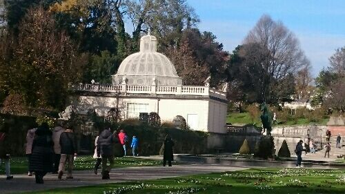 練習が終わりみんなでレストランでランチした後、シェーンブルン宮殿を訪ねた。「フランスのベルサイユ宮殿に匹敵する宮殿を」という命により設計された、ハプスブルク家の夏の離宮で、マリア・テレジア・イエローとよばれる華やかな黄色 の外観が壮麗かつ巨大な建物だった。夕暮れ時ですごく空いていて楽々見学できてラッキーだった。マリー・アントワネットの部屋や6歳のモーツァルトが演奏を行った鏡の間、ナポレオンが暮らした部屋など、数々の歴史の舞台となった宮殿部屋が次々と登場し、まさに歴史だった。 夕暮れの闇の中に黄金色に輝くシェーンブルン宮殿 贅を極めた内部 会議は踊る されど会議は進まず ウイーン会議の間宮殿の外に庭園もあったが、もうすっかり暗くなっていたし、その後にコンサートが予定されていたので庭園は走って観に行き、ざっと見て終わった。毎日ハードスケジュールだった。
