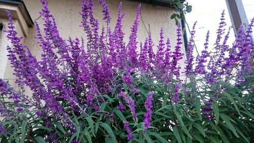 アメジストセージが満開になっている。南側の日当たりのよい場所に植えているのとこの植物の生来の強靭さが相まって繁殖の勢いが止まらない。フェンスから大きくはみ出して咲くため通行人の邪魔になるのでとても心苦しく思ってはいるのだが、せっかく咲いているので切ってしまうこともためらわれる。今年は株の中ほどを強く結わえて外にはみ出すのもを少し抑えた。花の少なくなる晩秋かつ日差しが短くなるこの時期に花を咲かせて花壇に彩りを見せてくれるのが有難い。その鮮やかな色と、手触りの良さそうな花は遠くからでも目立ち、この時期あちこちの家庭で咲いている。多年草なので毎年花を咲かせ、虫も付きにくく、手入れもほとんど要らず、さらに花持ちが良いため長く楽しむことができてずぼらな私にはぴったりの花だ。所せましと咲き乱れるアメジストセージ