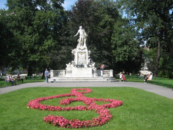ウイーンは日本の真冬のように本格的に寒かった。日没も早いので午後の時間はとても短い。その日は曇り空でもう薄暗かったが中央墓地に音楽家の墓を訪ねた。お墓参りである。トラムに長く乗って段々見慣れない風景になった。中心部からかなり離れていかにも田舎という感じになった所でトラムを降りた。中央墓地である。寒々としたコンクリートを歩く。道の両サイドには洋式の墓が延々と続き、かなり歩いたところで音楽家の墓が集まっている場所に来た。この中央墓地の特別名誉区・音楽家エリアには、多くの著名な音楽家が埋葬 されており、クラシック音楽の聖地ともいうべき場所になっている。ベートーベン、シューベルト、ブラームス、シュトラウス、スッペの墓などにお参りした。墓は立派で驚くべきことに生き生きした美しい生花やリースが捧げられていた。ムジークフェラインザールでベートーベンのピアノ協奏曲を演奏するので演奏の成功を祈ってみんなでメトロノーム型のベートーベンの墓にリースを捧げた。 ベートーベンの墓の前で シューベルトの墓段々うす暗くなってきたが、もう一人どうしても参らなければならない作曲家がいる。モーツアルトである。彼は死後、どこに埋められたのか今もってはっきりしていない。映画「アマデウス」では共同墓地に袋に入れられて他の無縁仏たちと一緒にドバッと無造作に投げ込まれていた。その彼が埋められているザンクトマルクス墓地まで移動した。もう暗闇でどこに彼の墓があるのかとてもわからなかったが道標を目当てにたどり着いた。暗いし寒いし墓地で不気味だし、まさに鬼気迫る墓参りだった。 道標と記念碑墓地の適当な所に雑に埋葬されたので、どこに遺体があるのかは今でも分かっていない。