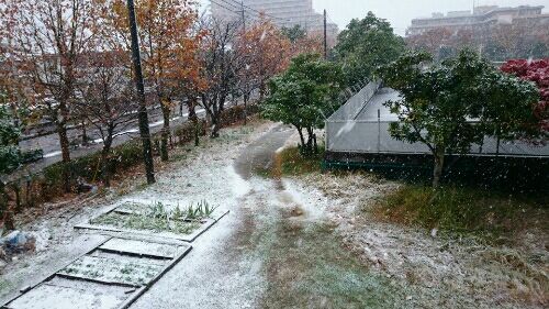 11月24日朝、カーテンを空けてみると雪が降っていた。予報通りだ。そしてものすごく寒い。ウオーキング出勤は諦めて車で出勤する。路面に雪はまだなく、運転には支障なかった。降りしきる雪を見ながら仕事に励んだ。暖房器具はガスストーブ1台だけなのであまり暖かくはならないが、何とかしのいだ。先刻ウイーンで-2度の低温を経験しているので少し耐性ができていた。午後になっても雪は降り続いて当たり一面雪景色になり、紅葉の上にも白く雪が積もっていた。寒いので風邪ひく前に体を温めようと夜は鍋物をたくさん食べた。めまいも大分落ち着いてきて、浮遊感が薄れ、足元が安定してきた。あと一息だ。