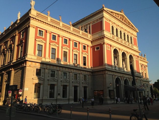シェーンブルン宮殿からホテルに帰り、夕食もとらず、トラムに乗ってムジークフェラインザールに駆けつけた。ムジークフェラインザールはニューイヤーコンサートでお馴染みの ウィーン楽友協会で、黄金のホールは その音の(響きの)良さでは世界屈指のものとされている。クラシック音楽ファンなら一度は聴いてみたい、またはそのステージに乗って演奏してみたい憧れのホールである。ホールは二つあり、大きい黄金のホールと少し小さいブラームスホールがあるが、今回は大きい黄金のホールである。 ムジークフェラインザール外観日本と違うのはまずクロークにコートを預けなければならないことである。預け代を取られ、プログラム代を払って、広い階段を上がって、ホールの中に足を踏み入れると、まばゆいばかりのシャンデリアが豪華絢爛に吊られていて、内部の装飾は、日本のホールとは比べものにならない格調高いものである。ホール自体は、いわゆる靴の箱形式のホールで、思ったよりも幅が狭く、奥行きが長い感じである。 内部このまばゆいばかりのゴールデナーザールでウイーン交響楽団の演奏を聴くとなると一体どんな服装で臨めばいいのか随分悩んだが、結局黒っぽいプリーツdressにロングネックレスを二重にかけ、イヤリングをつけ、その上に短い毛皮の上着を着ていった。会場は立ち見席も満員の大盛況、曲目はモーツアルトのピアノ協奏曲とブラームスの交響曲第一番ハ短調。どちらも大好きな曲である。ウイーン交響楽団の演奏はこの上なく素晴らしかった。こんな芳醇な響きは日本で聴いたことがなかった。残響が長く5秒くらいその響きが残り、ホールに漂っていた。音楽より音響に感激してしまった。これが本場ウイーンの響きだ。若い時にこの音を聴いたらその後の人生も変わってしまうだろうと思った。ああ、もっと若い時に聴きたかった!!。昨夜は時差で眠れなかったが、今夜はコンサートの興奮でまた寝付きが悪かった。