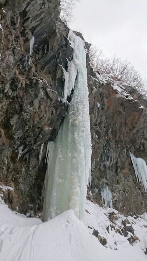 1月23日、計画に従って北海道雷電海岸へアイスクライミングに出かけた。と言ってもこの時期の北海道は暴風雪や積雪で順調に飛行機が着陸できるかどうかがまず第一の核心だった。朝天候調査して条件付きフライトということで何とか出発し、除雪の終わった新千歳空港に着陸できた。空港は雪景色だった。 羽田空港7:00 千歳空港 9時 新千歳空港空港でガイドと落ち合い、車で札幌⇒小樽⇒余市⇒岩内町と長距離移動し、午後2時ごろ雷電海岸に到着した。道路も凍結し、風景はまさに北国そのものでモノトーンの世界だった。 一面雪の風景鳴神トンネルから2350mの雷電トンネルをくぐると雷電海岸が広がる。雷電海岸は日本海に面した崖で、山としては特筆すべきものは無いが、冬季になると何本もの氷瀑が出現してアイスクライミングが楽しめる。駐車場から遠望すると1ルンゼから4ルンゼまで白い筋がはっきり見えて氷瀑ができていることがわかり、嬉しい。この寒さでしっかり凍結している。 雷電海岸全景早速身支度を整え、雪道をⅠ時間弱登って2ルンゼの取りつきに到着した。陽が落ちるのが早いので急ぐようにとガイドに何度も言われて焦り、初歩的ミスをいくつも犯しながら2ピッチを昇った。ルートは特に難しい部分は無く楽しく昇れ、練習と肩慣らしに丁度良かった。すぐ真っ暗になるとプレッシャーをかけられ、ミスして時間を無駄にしたけど暗くなるまでにはちゃんと下山できた。 2ルンゼ2ピッチF1の登攀 冬の日本海終了点から日本海が俯瞰できた。鈍色の海が白浪を立たせて浜辺に打ち寄せ、見るからに寒々としていた。海鳴りの音がゴーゴーと響き、それを背に聞きながら昇るのが豪快だった。