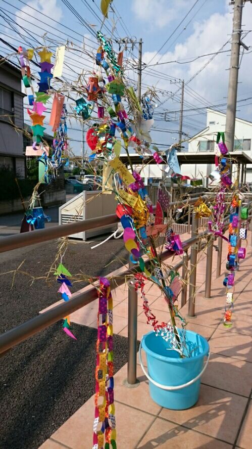 7月7日今日も耐え難い暑さの一日だった。職場の私の部屋はエアコン無し、パソコン無し、冷蔵庫無しの三無し部屋なので耐え難い。せめて冷たいドリンクでも飲みたい所だがそれもかなわず、身の置き場がない。クライアントが来れば気が紛れるのだがこのところどの子も体調が整わないのだろう、誰も来ないのですることがない。贅沢な話のようだが、すること、できることがないのはとても辛い。やっと勤務時間終了で退勤したら、家の前のデイケア施設に七夕飾りが風にひらめいていた。入所者の皆さんの願い事がいろいろ書いてあり、色とりどりでキレイだ。そう、今日は七夕だった。天気が良いから天の川をわたって織姫と彦星も会えることだろう。ちょっと夢とロマンがあってほのぼのした。