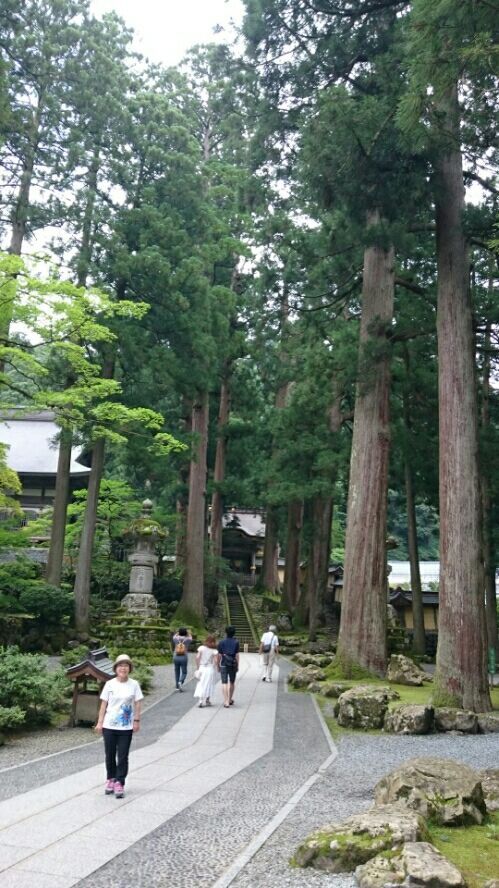 7月29日永平寺を訪ねた。一口で言ってその建築物の豪壮かつ緻密かつ端正で美しいのに驚嘆した。それも山の斜面を活用して高度を上げて建設されている寺社と寺社の密度が高く、配置が絶妙で重なり合っている。だから移動はほとんど急な階段を上がることになる。禅僧の修行には最適だろう。床はすべて木で磨きこまれている。更に入口から随所に生えている樹齢何年かもわからない巨木が立ち並び、清浄な空気が漂っていて気持ちが落ち着いた。樹木は入口だけでなく寺社の前後にも巧妙に配置されて、寺社を引き立てている。何て素晴らしい感性なのだろう。寺社と自然が一体となって修行の場に相応しい美的空間を醸成しているのに感銘を受けた。環境が人をつくるのは修行増にしても私たち一般人でも同じだろう。 入口 巨木が立ち並ぶ 端正な経堂 最も美しいと感じた中雀門 後ろの寺院との重なりが絶妙 古く豪壮な仏殿 寺社と緑の配置も絶妙 一文字廓と仏殿 重畳たる甍の重なり 屋根を支える蟇股も凄い 壮麗な内部 足元に阿吽の唐獅子2対 表情が可愛い 山門両サイドの神々たち