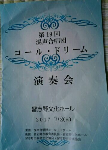 7月2日、山に行く予定で準備していたが朝、雨が降って地面が濡れていたのと各地の天気予報の悪さにひるんで山は中止、代わりに混声合唱団コール・ドリームのコンサートに行った。驚くことばかりだった。1時半開場2時開演だったので1時35分頃文化ホールに着いたのにホール入口はもう長蛇の列。なんでこんなアマチュアのコンサートに行列ができるんだ!?。よく見るとシニア軍団、まさに高齢者ばかりが並んでいた。やっとエントランスまで入ってモニターテレビを見ると会場の席がほぼ埋まりかけているではないか!?開演まで20分以上もあるのに何で埋まっているんだ?これじゃ、ぼんやりしてると席が無くなるという焦りで急いでホールに入るとホントに席がない。やっと前から三列目に一つ空いていた隙間に座れた。何てことだ。アマチュアのそれもシニアのコンサートがまるでアイドルのコンサート並に混んでいる。あきれながらもアマチュアでシニアだからこそ混んでるんだろうなあと考え直した。シニアは早めに行動するからなあ。それに出演者は誰にも彼にも招待状を配るし、貰った方も暇だからタダなら必ず来場するものなあ。演奏そのものは適切なプログラミングで楽しめた。合唱団も観客席もどこも見てもシニアばかり。ほとんど私より年上だろう。圧倒的に多い女性は真剣に、男性は楽しそうに歌っていたのが印象的だった。 構成は第一部高田三郎作曲の人気曲「心の四季」から始まり、第二部美空ひばりの「川の流れのように」などポピュラーな曲を合唱にアレンジした「我が青春のノスタルジア」、休憩の後は管弦楽に東京バッハ・カンタータ・アンサンブル、ソリスト4人を迎えてモーツアルトのミサ曲が2曲演奏され、変化があって楽しめた。ミサ曲はソリストも入り、オールラテン語で難しかっただろうなあ。知人の先輩が歌っている表情を見ていると難しいので一生懸命歌ってますという雰囲気だった。大体高齢者がコンサートでずっと舞台で立ち続けて歌うと言うこと自体が体力勝負で、どこか具合が悪い方なのか女性で一人椅子に掛けて歌っていた人もいた。 第二部 我が青春のノスタルジア 第三部 モーツアルト ミサ曲第八番「雀のミサ」 でも高齢になっても歌う喜びを求めて練習を重ね、こうしてホールでコンサートを開けるなんて素晴らしいことだ。シニアパワーを実感した。