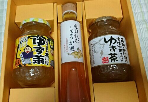 愛媛県の宇和島市に住む姪からお中元が届いた。42歳の若さで脳腫瘍で亡くなった弟の一人娘だ。母親も重病で離別したため、両親がいない可哀想な環境、これも今は亡き祖母が60歳からの子育てで一生懸命育てあげた。そんな逆境の中で生き抜いてきただけあって彼女はとてもしっかりしている。毎年盆・暮れにはお中元とお歳暮を必ず贈ってくれる。弟の血がつながったただ一人の肉親だし、弟の面影が残っているので可愛く思っている。彼女の贈り物は地方色豊かで四国特に愛媛県と高知県の特産物をよくリサーチしている上、私の健康志向をよく知っていてヘルシーな品を送ってくれる。今年は高知県北川村のゆず茶と毎日飲むしょうが蜜のセットだ。ゆず茶はマーマレードとしても利用できるので使い勝手がよい。有難く感謝して日々の生活に活用していきたい。 坂本龍馬と中岡慎太郎が仲良くお出迎え