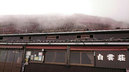 7月9日富士山8合目の白雲荘に一泊した。この小屋は標高3200メートルの位置にあり、富士山トレーニングの1日目には必ずお世話になっている小屋である。なぜ一1目なのかと言うと突然山頂小屋3770メートルだと馴化してない体にきついし、山頂小屋は7月15日過ぎないと宿泊できないからである。それに富士山の山小屋だと通常大部屋で混雑するのにここでは小さな個室をもらえてプライベートが保てて寛げるし、女将さんはじめスタッフも親切だからもう何度もお世話になっている。今回も女将さんと再会してともに元気を喜びあった。女将さん69歳、この年まで富士山の空気の薄い所で仕事できるなんて素晴らしい。 富士山8合目白雲荘外観 白雲荘室内 女将さんと 彼女が私より一歳年下 小さな個室でよく休めた 受付の女性からコーヒーをご馳走になる 女性トイレのユニークなのれん今回もとても親切にしてもらってコーヒーやおむすびをご馳走になった。朝食がキツネ寿司と巻きずしのセットに変わっていたのでオーダーしたらかなり美味しかった。夕食は富士山の定番ハンバーグカレーだったので遠慮した。やはり朝はご飯が腹持ちよくて頼りになるけど、白いご飯に佃煮というパターンだと食べにくい今回は丁度よかった。ご来光登山のたくさんのゲストを手際よく親切にもてなしてスタッフの皆さんはきびきびと仕事していた。