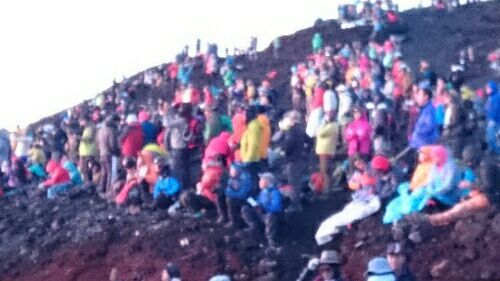 数年ぶりに富士山に登ったら驚くことばかりだった。それは外国人がものすごく多いということだ。前述したとおり、行きのバス車内が西洋人、韓国人、中国人、その他識別できない国籍の外国人で日本語が聞こえてこないのだった。以前箱根のバスで似たようなことを経験してはいたが、まさかここまでとは予想外だった。いや、私の現実認識が遅れているのだ。それは富士登山においても同じだった。日本人もいたが圧倒的な外国人の登山者!!。二日間の富士山滞在中、ヨーロッパ人、韓国人、タイ人、ギリシャ人、ポーランド人などいろいろな国の皆さんと交流した。みんな陽気で活発だった。バスターミナルや売店、富士山の山小屋などは外国人対応体制が整っていて、英語や韓国語でスムーズに事務処理していた。前回登った時には山小屋でまるで喧嘩しているような大声で喋りまくっていたK人やT人が際立って不愉快だったが、今回はそのような現象には遭遇しなかった。K人と思われる青年たちがかなり登山していたが、みんな静かでちゃんとマナーを守った行動だった。アジアのその他の国から来た皆さんは総じて落ち着いていて、言動も謙虚に思えた。もちろん西洋人は洗練されている。 ご来光と山中湖 剣が峰と中央火口付近は残雪豊富社会のグローバル化とオリンピック効果を思い知らされた富士山だった。