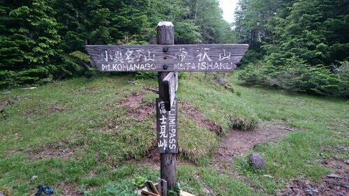 明けて7月16日3時15起床、赤飯と煮豆とヒジキの煮物にコーヒーを呑み、4時半出発。昨日下った急坂を女峰山へと登り返す。今日もまた女峰山(2483M)からの大展望はかなわなかった。山頂から細いガレ道を下って縦走路に入る。急峻な岩場を慎重に下り、鎖のあるヤセ尾根で日光三険の一つ「馬の背」を越え、シャクナゲの密生する岩稜を詰めると帝釈山。ここも展望なし。一息ついてすぐに富士見峠へ下る。ゴロゴロした岩の山頂から倒木をまたぎ溝状の道を踏みしめて延々と下ると富士見峠だ。でも富士山なんぞ全く見えない。 富士見峠そこから再び登りのガレ場や樹林帯を越えて小真名子山、シャクナゲがたくさん咲いていて電波塔が立っていた。大真名子山への道も樹林帯を急降下し、倒木や立ち枯れの木を縫って登る。傾斜がきつく雨でえぐられた道が続く。そしてやっと大真名子山。立派な日野権現の像が立っている。 小真名子山 大真名子山の青銅像朝からずっとガスが中でどこまで登っても展望はゼロ。何も見えないがそう嘆くこともない。照らず降らず鳴らず(雷)で涼しい中で登山できるし日焼けも少しで済む。大真名子山からの下山はまず鉄梯子と鎖の千鳥返しの岩稜を下り、長い樹林帯をひたすら下る。もう嫌になった頃、うっそうとした原生林の中に八海山神像や大霊神碑などが立ち並んで異様な霊気が漂う場所に来る。そこから道は緩やかな笹原になって突如、志津乗越に到着した。夏の暑い日差しが容赦なく照り付けている。ガスの中ばかり通ってきたのでこの日差しに一瞬ひるんでしまった。木陰を探して大休憩とランチ。靴を脱いで湿っぽくなった靴下と脚を日に当て、しばしの寛ぎ。時間は10時半を過ぎた所である。さあ、これからどうしようか?。当初の計画はここまでで下山する予定だったが、まだ11時にもならない。おまけに悪かった天気が回復傾向ではないか。ちょっとハードな気もしたが、続けて男体山まで縦走することにした。志津小屋の前から男体山方面の登山道を登り始める。1合目という標識が見える。樹林帯に入るとそう暑くなくて助かった。誰にも会わず黙々とひたすら登る。2合目、3合目と高度を上げ、7合目頃になると本日初めて山の姿が見えた。男体山である。 崩壊地の先に男体山更に8合目あたりまで高度を上げると日光の山並みも見えるようになった。 やっと姿を見せた日光連山8合目を過ぎると風が出て涼しすぎる感じになり、時折雨もぱらついてきて標高があがった気象になってきた。そしてついに男体山山頂に到着した。かなりの登山者がいて写真を取り合っていた。私も自分が写っている写真がなかったので撮ってもらった。 男体山頂 剣の形をした標識が珍しい こちらは二荒山大神 日光白根山?男体山には登山者が多かったし、トレイルランナーもいた。もう午後2時だというのにまだまだ登ってくる人がいる。一休みして最後に残った行動食を食べて下山開始。途中で雨が降り出してきて雨具上下を着るのに手間がかかった。でも30分ほどで雨はあがったが、どろんこの道を下ることになった。途中で修験者の装束で登ってくる男性に出会った。この手のものは大好きなので早速声を変えてしばらく話をした。大阪から朝一の新幹線できたそうで、山伏スタイルが決まっている。ほら貝を首にかけ足袋・脚絆などすべて純白だ。以前は日光にも修験道があったのに今は忘れ去られていて残念だと話されていた。楽しく青岸渡寺や補陀落などの話をして別れた。 山伏スタイルで登山る男性 二荒山神社中宮山は二荒山神社中祠の境内なのだが、これが実ひたすら下るだけの道にもう飽きてしまいおまけにトレッキングシューズの縁が脚に当たって痛くなり、散々だった。眼下に日光の町と美しい中禅寺湖がすぐ見えるのだがなかなか到着しない。5時40分頃、やっと二荒山神社に到着。朝4時半から約12時間、歩き続けた長い縦走が完結した。参考タイム 4:30 唐沢避難小屋→女峰山5:10 5:15→富士見峠6:15 6:30→小真名子山7:10 7:20→大真名子山8:45 8:55→志津乗越10:30 11:15 →男体山14:00 14:30 →二荒山神社17:40
