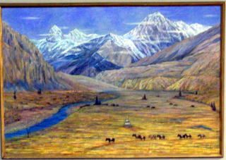 7月26日今日は研修日で総合教育センターで一日勉強した。市センターは本市の最東端にあるためちょっと遠い。なのにこんな日に限って朝から大雨!!。真夏なのに長靴を履いてバスと電車を乗り継いて実籾駅まで行き、更に20分ほど雨の中を歩いてやっと着いた。集中豪雨で苦労している皆さんもあるのにこの程度の雨に文句言うんじゃないよ、涼しくてラッキーと思わなきゃと言い聞かせた。研修そのものはプログラム化された内容なので緊張するような出番もなく、同じ職務の皆さんと情報交換したりして気楽ではあったが、やや物足りなかった。センター内にギャラリーがしつらえてあって市内在住の芸術家の作品が展示されていたので昼休みに観て回った。年に一度のお努めが無事終了してほっとした。さあ、いよいよ明日から本格的に夏休みだ。頑張ろう。 ギャラリーの作品 増田欣子 ヒマラヤを行く 石井末一 秋の野原