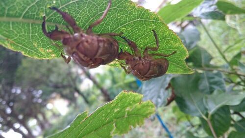 9月5日、私の仕事場所は校舎の中枢部をはるか離れた辺境の地にある。そのため中庭を横切る渡り廊下を歩いていくだが、今朝中庭の低い枝に蝉の抜け殻が2匹連続しているのを見つけた。もう9月だし2匹が連なっているのも珍しい。近づいて葉っぱを見るとこれ以外にも二か所の葉裏に抜け殻を見つけた。こんな小さな枝から4匹も抜け出したことになる。この土地はよほど栄養が豊かなのだろうか。殻はかなりしっかりしているので遅く脱皮したのだろうな。 この蝉の抜け殻はキチン質(海老やかにの殻などの主成分)で出来ていて食べられるという。毒は全くなく幼虫や成虫も食べられ、揚げるなど色々調理して食べる人もいるらしい。また蝉退と呼ばれる漢方薬として利用されていて効能は痒みや咽痛・発熱に効くそうだ。マンガの話でドラえもんのジャイアンがジャイアンシチューを作る際イチゴジャムや大福なんかといっしょに具材として用いてると書いてあった!!。ホンマかいな。