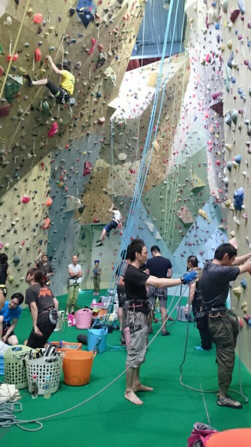 9月18日台風一過で真っ青な青空と暑さが戻ってきた。だが、小川山はキャンセルしているので出かける所がない。早い時間に晴天が確保されていればハイキングにも行けるのだが、明け方まで雨風が残っていたのでそこまで見極めることもできなかった。やむを得ず、遅まきながらも葛西のロックランズにクライミングのトレーニングに出かけた。到着した時間が午後3時前、ジム内はたくさんのクライマーでごった返していた。みんな同じ状況だったに違いない。今日は息子も同行できず、全くの一人参加で自動ビレイ機でやるしかない。自動ビレイ機で登れるルートは決められたほんのわずかなルートなのでつまらないが昇らないよりはましだ。しかし良いこともあった。敬老の日で料金が1080円だった!!。仲間内でリードしあっている人の波を縫って、一人自動ビレー機で黙々と昇った。ルート数が少ないので段階的グレードアップはできないのが辛い。 賑わうロックランズ室内をよく観察していたら、やはり一人で来ていて自動ビレー機で昇っている男性がいたので、声をかけ、お互いにビレーし合って何本か昇りたいルートが昇れて気持ちが明るくなった。その男性との体重差が30キロ以上あったので降ろす時、井戸のツルベのように自分が空中につられたりしてヤバかった。3時間ほど粘ってトレーニングした。
