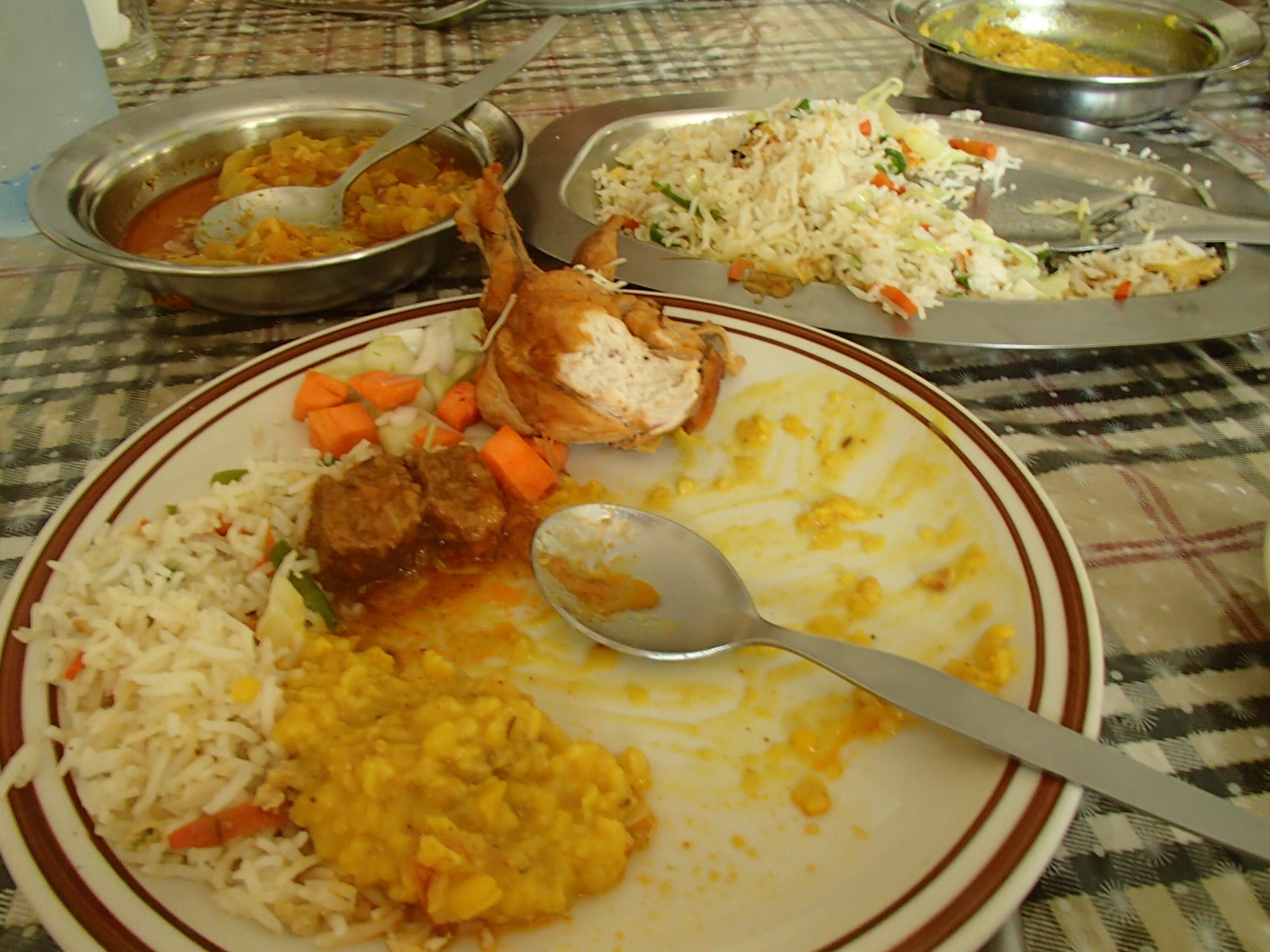 パキスタンに行って最も惨めで辛かったことは現地食が合わなかった結果、起こった下痢である。パキスタンに入国してから徐々にお腹の具合が緩くなり始めた。過去に同じツアーに参加した友人は1日5回下痢で専用車の最後部座席に横になって縦方向のゆすりを避けたと言っていた。最も酷かったのは帰りのバンコク空港だ。イスラマバードで最後の現地食を少し食べて出発、トランジットでバンコクに着き、搭乗ゲートまで長い距離を早足で歩いた。これが災いした。段々催してきて危険を感じたのでトイレに入ったが、既に6人位が並んでいた。もう限界になっていたお腹は肛門の括約筋を絞めてもダメで少しづつお漏らし状態になった。ああ。もう駄目と絶望的になり、パンツの中にまで下痢便が漏れ出している不快さが感じられた。やっと順番が来てトイレに入ったが、もうパンティ・パンツともに下痢便が付着しで目を覆いたい惨状だった。フライト時間は迫ってくるし、着替えの下着もズボンも持ってないし、バンコクのトイレだからウオッシュレットでお湯が出るなんてこともない。「ええい、落ち着け、前にも同じようなことがあったではないか」と自分をクールダウンし、まず下痢便をふき取ることから開始。水様便なので何度も何度もペーパーで拭いて処理。次はパンティとパンツを脱いで便をトイレのタンクの中で振り洗いし落とした。 香辛料の強いカレー料理が連日続いた何度も何度も振り洗いして便はもう付着してないはずだったが、何だか臭う。フライト時間が迫ってくる。不潔な匂いを漂わせながらトイレから出て搭乗口に駆け付け、機内へ。座席の上にタオルを敷いてその上に座った。機内でも度々トイレに入ってその後の状態をチェック、幸いにもそれで収まったようでさらなる惨事は起こらなかったが匂いはずっと残っていて自宅まで続き、周辺にいる皆さんに申し訳なかった。もうイヤ!!パキスタンに行って次に登りたい山の目星をつけてきたが、山に入る前に現地食でこんなに苦労するならこの方面に入ることは困難な気がした。