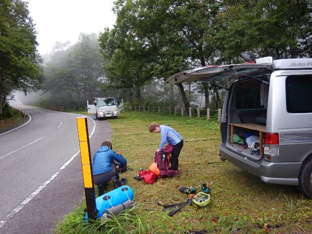報告が遅れました。実は8月31日に富山に前泊し、太郎平小屋、薬師沢小屋に宿泊して赤木沢の沢登りをする計画でした。所が台風は接近するし悪天候だったのでこの案は中止。三日間暇になって困っていたところへ、甲斐駒ヶ岳黄蓮谷右股から転戦してきたKガイドに天候が回復してきたので赤木沢に行きませんかと声をかけて頂き、渡りに船とばかりに飛び入りで参加してきました。行程は大幅変更、小屋泊なしで野宿です。9月1日 自宅→松本→車で飛越トンネルまで移動、車中泊9月2日 飛越トンネル→折立→太郎平→薬師沢→黒部川→兎平で野宿9月3日 兎平→赤木沢遡行→北ノ股岳→太郎平→折立→松本9月2日 ゲートが開くのを待って朝一で出発したが、折立に到着したら駐車場はほぼ満杯。天気が回復傾向なので登山者が溢れていた。 折立で出発準備をする 沢山の登山者が行きかう折立登山口からはいきなりの急登が1時間程度続き、そのあとはなだらかな道や急登が入り混じる。ガスがかかって陽が照らず涼しくてよかった。久しぶりの日本の山でテント泊の装備を背負い、なかなか苦しかったが飛び入り参加させてもらっているので贅沢は言えない。耐えて5時間ほど上り詰めると突如、霧の中に建物のシルエットが見えてきた。太郎平小屋だ。 ちょっと一息ついて 木道の向こうに太郎平小屋小屋前で10分弱休んですぐ薬師沢に向かって出発。1日の行程が長いので全く余裕が無いのが厳しい。 薬師岳も姿を見せて北アルプスらしい風景が広がるそこからは熊笹の道をぐんぐん急降下して薬師沢をめざす。降りきった地点でベンチに座って一息。またすぐ出発。熊笹の中に木道が敷かれ、池塘もあって素敵な風景だったが、ゆっくり花を愛でる余裕はなく、どんどん高度を下げていく。 熊笹の中で一息ついて下りきる寸前で藪漕ぎをして薬師沢小屋前に出ず、直接黒部川に降り立った。清冽な流れの音が響いている。黒部川だ。 黒部川に降り立つそこからいよいよ沢登りが始まった。今回は折立から靴は既に渓流シューズで登ってきたので、沢スパッツと沢ソックスをつけて黒部川に入った。黒部川は透明度が抜群で水は澄み渡り、水底がはっきり見える浅い部分に淀みのある渕、鮮烈な水しぶきをあげてほとばしる奔流が入り混じって変化に富んでいた。ただただ素晴らしく、流れに見入りながらも初心者なので慎重に進んだ。 黒部川と赤木沢の出合い 水流の激しい所や深い所を頑張って越えて奥の廊下に到着。Kガイドの素晴らしい配慮でここで岩魚釣りをした。入れ食い状態で私でも2・3度釣り竿を投げ入れるとすぐ釣れた。3人で1匹つづ釣りあげて露営地まで運んだ。 黒部川奥の廊下で岩魚釣り…もう最高!!今日は奥の廊下の更に上流にある兎平で野宿することになっており、更にどんどん渡渉して兎平に到着した。午後の日は少し陰り始めていた。参考タイム 飛越トンネル5:45→7:15折立駐車場7:30→太郎平12:00 12:10→薬師沢14:20 →黒部川奥の廊下15:30 16:00→兎平16:20