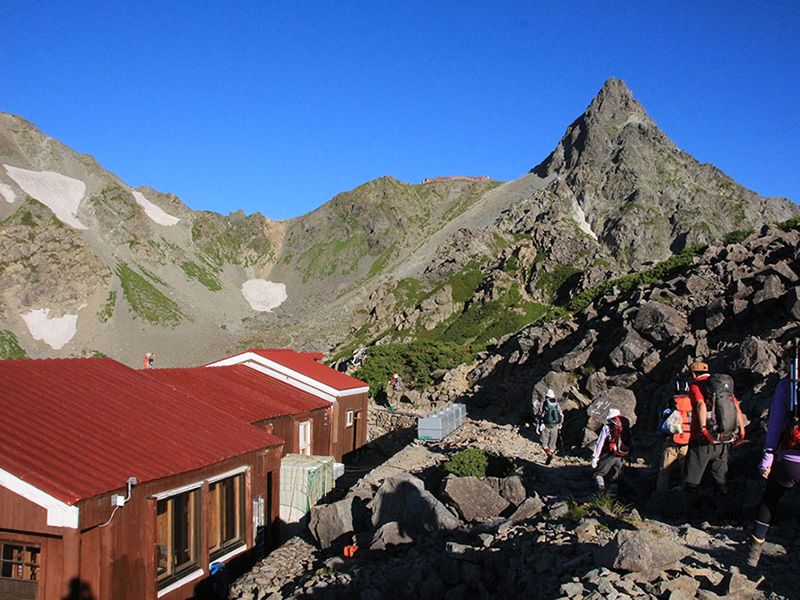 今回、ヒュッテ大槍に2泊してお世話になった。槍ヶ岳周辺には何度も来ているのだが、ヒュッテ大槍は見て通り過ぎるだけで泊まったことがなかった。ここは料理がとても美味しいという定評があるので楽しみにしてきた。肩の槍ヶ岳山荘よりはこじんまりしているが清潔で合理的な設計になっていて快適に過ごせた。 槍ヶ岳が大きく迫って見える位置にある赤い屋根のヒュッテ大槍 明るい食堂で寛ぐK夫妻板張りの廊下の両サイドに部屋があり、二段ベッドが並んでいる。コロナ時代なのでこれまでの一人1畳が二倍になってほぼ2畳の広さをもらえた。中央にはロールスクリーンが設置されていてそれを下して仕切れるようになっている。もちろん出入口には消毒液があり、ヒュッテの中ではみんなマスクをしていた。エコに配慮した清潔なトイレがあり、乾燥室も小さいながらもずっと火を入れてもらっていたのでよく乾いた。こういうのが一番有難い。到着した日は雨の中を登ってきたのでザックから靴まですべてを乾かさねばならなかったが問題なく乾いて気持ちよかった。飲料も豊富で水はいつでも飲めたし、顔も洗えた。更に気がきいていたのはスマホの充電器が各ベッドに設置してあるので気兼ねなくいつでも充電ができた。 スマホ充電器がある二段ベッドの寝室自家製ワインがついている夕食はボリュームたっぷり。個別に配膳した献立のほかに大皿にパスタがついていて、みんなご飯よりパスタを大量に食べていた。 夕食 朝食 お味噌汁がすごく美味しかった 名物 つけ麺入り口の土間に机と椅子が置かれていてそこで気兼ねなく寛げるようになっていて、アルコール好きの皆さんは到着するや否やザックの片付けもそこそこに呑みまくっていた。 ヒュッテ大槍の広場で槍を見る至福のひと時槍ヶ岳周辺の小屋で泊まってないのはあと殺生ヒュッテだけだ。いつか泊まってみたい。