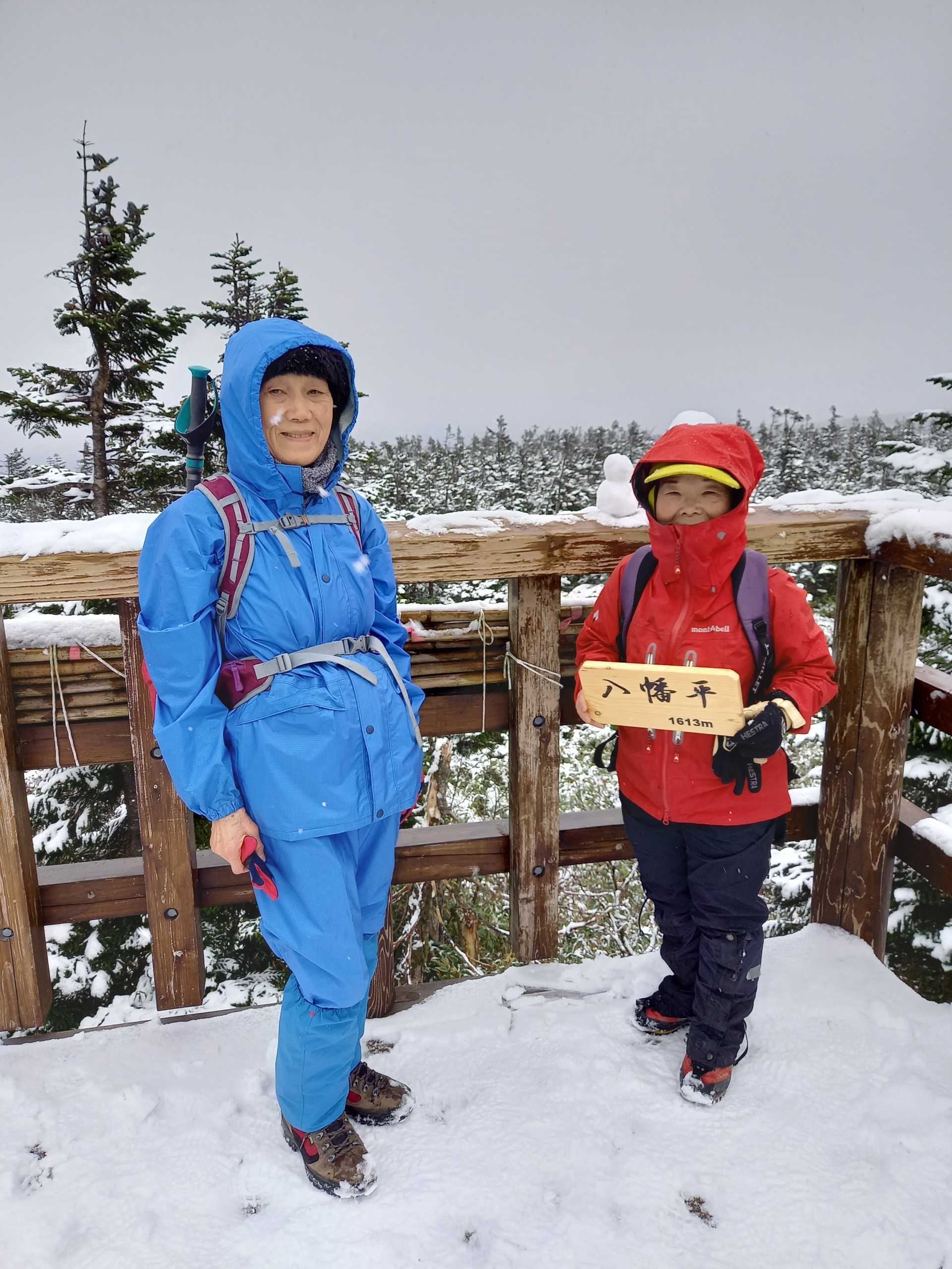 東北ツアーに参加したのは女性11名男性1名、平均年齢71歳、最高齢81歳男性、次が80歳女性で60歳から下の年齢の人はいなかった。81歳の男性が唯一の男子で76歳の奥様と一緒だった。このご夫婦にまず驚いた。見るからに高齢という風体なのだが登り始めると全く遅れを取らずひょうひょうと登っていく。驚嘆した。しかし5日目の秋田駒ケ岳を登って乳頭温泉に下るバスの中で男性が「朝からおしっこが出ず苦しい」と訴え、ツアーリーダーが俊敏に対応して救急車で都市部の病院へ搬送。事なきを得たがドクターから「もうお帰りになったほうがいいでしょう」と言われて6日目にご夫婦で帰京された。高齢だとどこにどんな病気が潜んでいるかわからないし、何が起きても不思議でないことを実感した。登山中からずっと苦しかっただろうに全くその振りを見せず、下山してから初めて訴えたその我慢強さにも皆から称賛の声が上がっていた。もう一つ驚嘆したのは全日程いつも同室だった80歳の女性Nさんだ。彼女も一見高齢で痩せていて大丈夫なの?という風体だったが、日々親しんでいろいろ聞くとアイスダンス!!を習っているという。もう絶句だ。それに身じまいがよくて小ぎれいにしていて老醜を感じさせない。登山ウエアのセンスもよい。そして10時間の岩木山こそ登らなかったがそれ以外の6座は何事もなくさらっと登っている。73歳の私だって楽でたまらないという訳ではない今回のツアーを80歳でこともなげにこなしていることに心から敬意を表した。そして体が柔らかい。とても80歳とは思えない体の柔らかさにも驚いた。ヨガのスキのポーズや踊り子のポーズ、猿王のポーズなど私も最近だんだん完成ポーズが取りにくくなっているのだが、それを何事もなくちゃらっとするのである。アイスダンスで様々な筋トレやストレッチをしてきた成果だろう。何でもできないことや辛いことは年のせいにして逃げている私は猛省した。私も頑張ろうという気になった。80歳までできている人がいるのだから。このツアーはとても刺激になる良い旅になった。 八幡平にてNさんと 高村光太郎「おとめの像」前にてNさんと