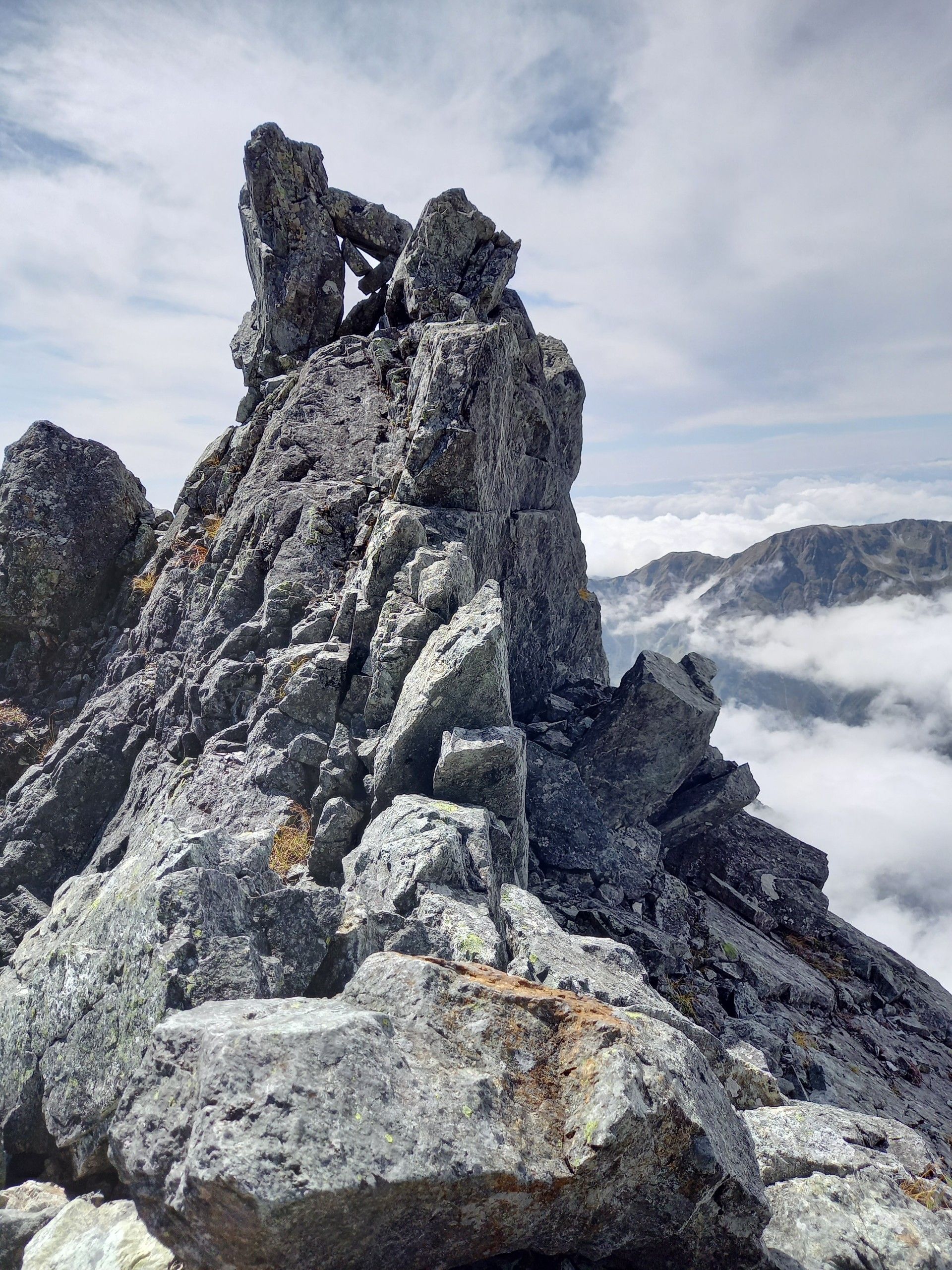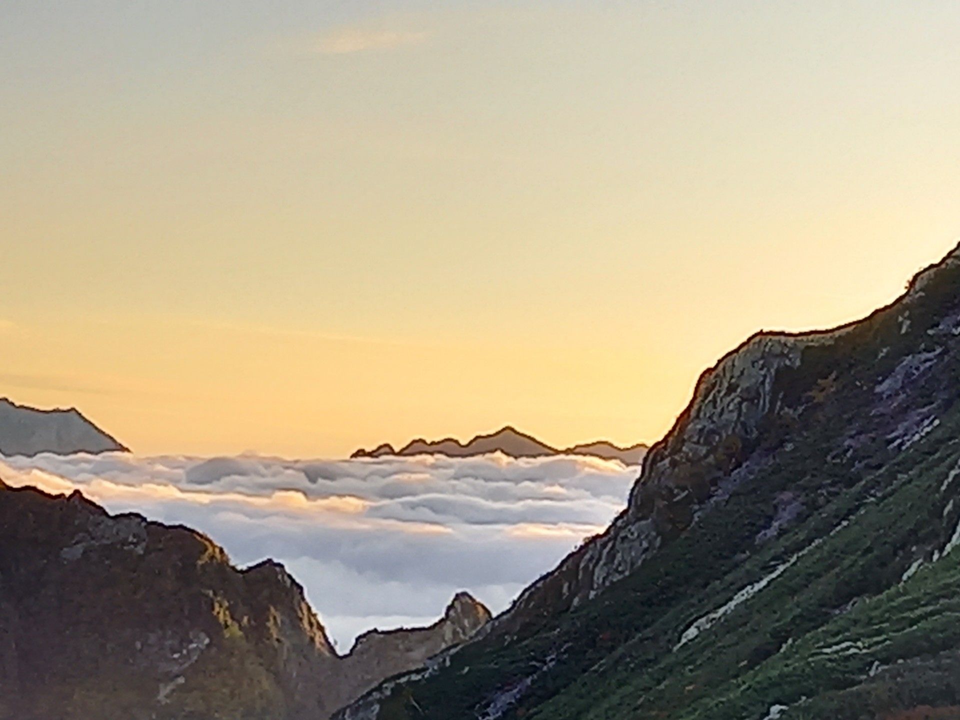 9月30日三日目の今日は剣岳に登頂した。3泊4日の今回の山旅、剱も自分一人で登るつもりでいたが、岳友が八ヶ岳で滑落死するというハプニングがあり、八ヶ岳より更に危険度が高い剱なので大事をとってこの日だけ地元ガイドMさんを依頼してあった。前夜Mさんと顔合わせし、打ち合わせしてコミュニケーションを取った。一般ルートなので焦る必要はなく、今日もしっかり朝食を食べてゆっくり6時過ぎに出発した。何度も登った道だったが今日は晴天で湿度は低く、風もなく最高のコンディションに恵まれた。何もかも素晴らしかった。 朝の空と雲海 池塘には氷が張っていた 草紅葉には霜が降りて 前剱付近 本峰が迫ってくる 前剱の門 カニの縦ばい前剱を過ぎると一段と本格的な岩場が連続してくる。カニの縦ばいを慎重に登り、更に岩場を詰めると山頂に到着した。数名の登山者がいたが、山頂は空いていた。 剣岳山頂 雪渓のない長次郎谷と八峰 あの素敵なテント場が雪がないとこんなに平凡な台地!! 熊の岩晴天で最高の眺望に恵まれた。たまにはこんな素晴らしい日もある。