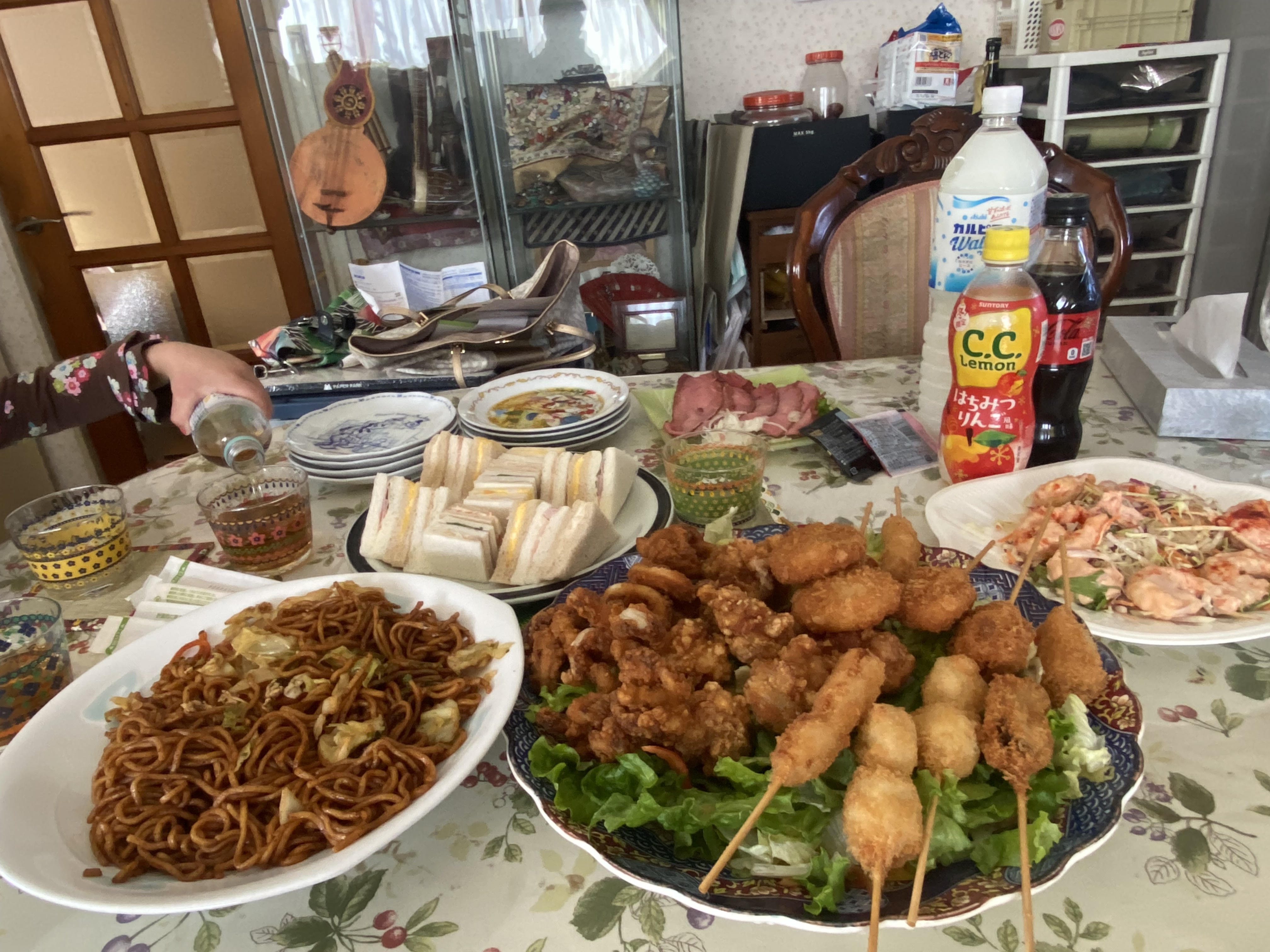 1月2日木曜日。昨日遅く、娘から明日行きたいという連絡があり、本日急遽娘一家が来宅した。予定になかったので大慌て。朝早くからイオンに行ってお子様用の食べ物を調達し、飲み物やお菓子などを買い求めて準備した。10時半過ぎに娘一家が来宅。葵ちゃんだけが父方の祖父母のほうに行っていて顔を見れなかったのが残念。でも3人の子どもと両親の5人が来たので大賑わいで久しぶりに老人宅に元気な子供の声が響いて明るい雰囲気に満たされた。みんな猫と遊びたいのだが、猫のほうは怖がっておびえ、隠れてしまっていた。テレビを観たりゲームをしたりして遊んでいた。お子様用の食事はわからないので困ったが、唐揚げ、串揚げ、イカリングフライ、サラダ、焼きそば、サンドイッチなどを見繕って大皿に盛りつけた。お腹が空いていたのかみんな相当食べてくれてお皿は全て空になってすっきりした。デザートにはケーキ、イチゴ、駄菓子盛り付けなどを提供した。こちらも大好評ですべて空になった。 3人ともひところより抜群に成長し、話が通じるようになっていたので全て楽で楽しかった。
