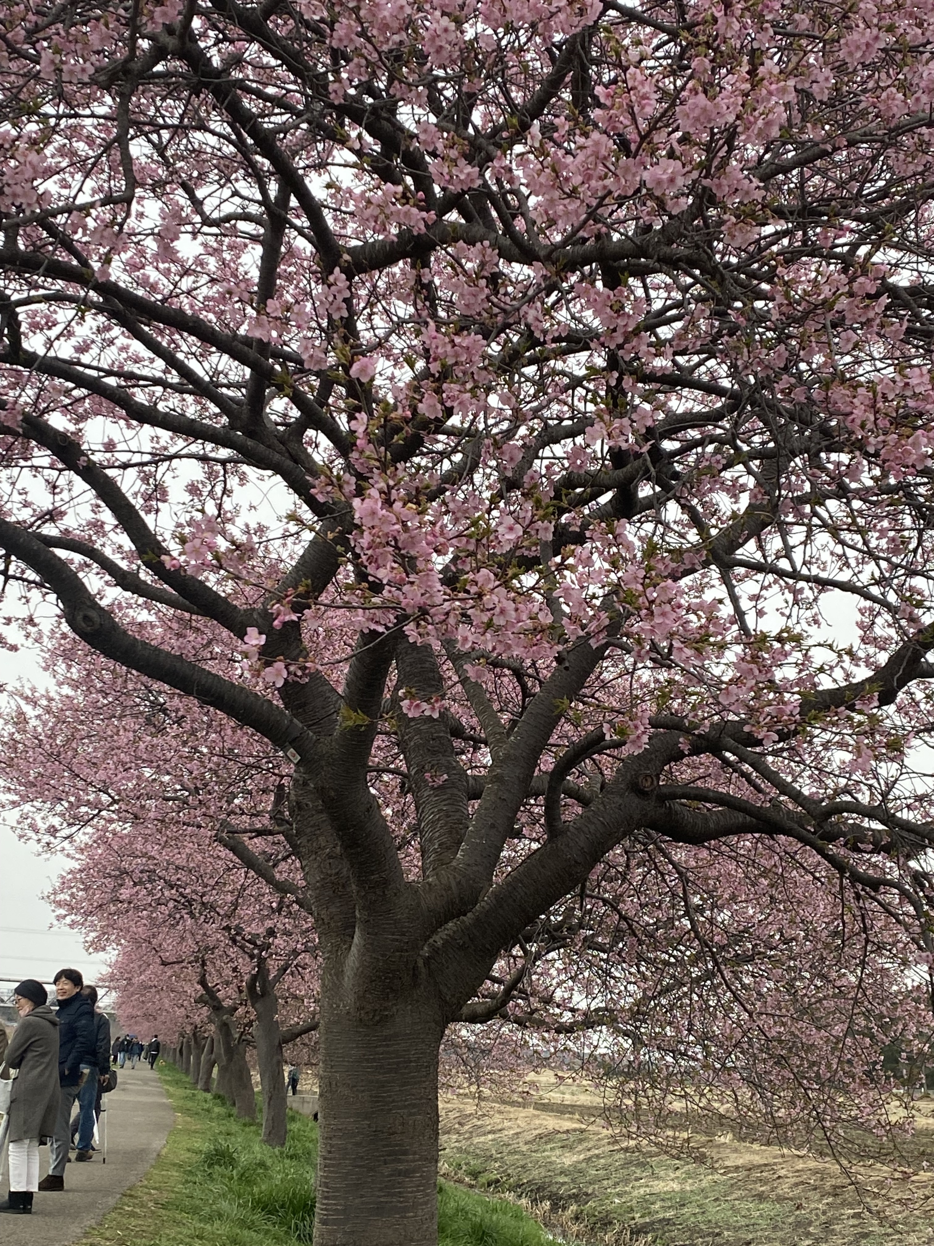3月17日月曜日。昨日からの雨もやっとあがり、今日は陽射しがあるほどほどのよいお天気に恵まれた。一昨日アンデルセン公園を訪れて憩いのひと時を過ごしたその帰り、娘が新川の桜並木を観に行きたいというので遠回りして八千代市の新川付近まで足を延ばした。突然、ものすごく美しい河津桜の並木が登場してきてそれが延々と続き、曇り空の中でもそのピンクの麗しい色が天上の花のように見えた。この新川辺りはまだ活力に満ちていた70才前半、長距離ジョギングしていた道でかなり詳しく知っている。本来はサイクリングロードとして整備されている道をゆっくりではあるが何度も走り、新川沿いの桜並木の桜の木1本1本に植栽者の名前とメッセージが添えられているのをじっくりと眺めたりもした。とにかく記憶に残る新川の桜並木がこんなにも満開で咲きそろっているのを見て、深い感慨が湧いた。自分は衰えてもう走るエネルギーも湧いてこなくなったが、あの日観た桜並木は今日もこんなにも美しい姿を見せて今年も咲いている。新川の川沿い9キロmの両岸には河津桜、染井吉野、陽光など8種類、約1300本の桜が植栽されていてこれを新川千本桜と読んでいるとのことだ。 どこまでも続く桜並木 新川千本桜案内図 八千代市ホームページより とても美しい風景 わが市にはないのが残念
