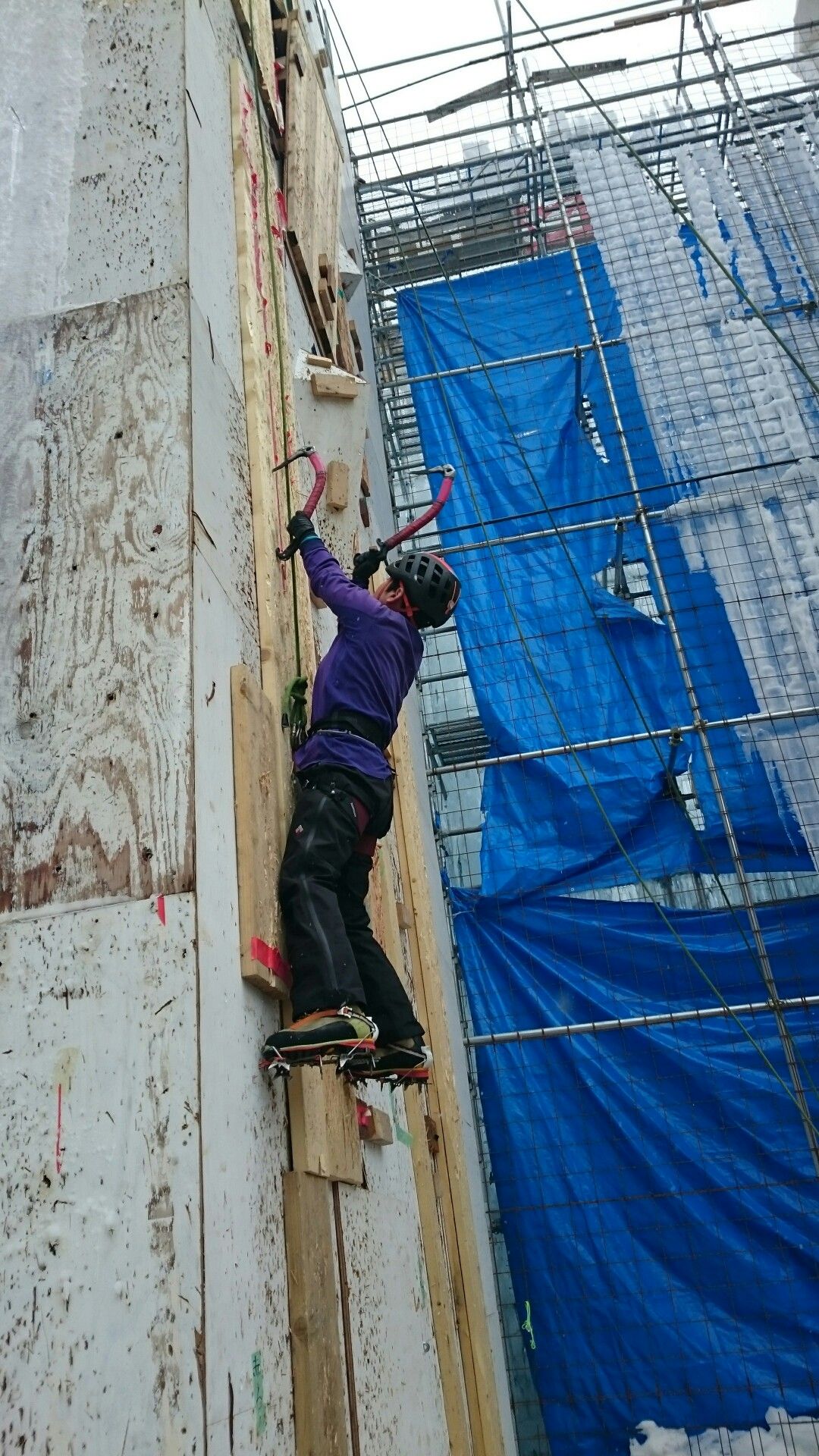 Rさんの模範クライミング               賑わう人口氷瀑アイスツリー