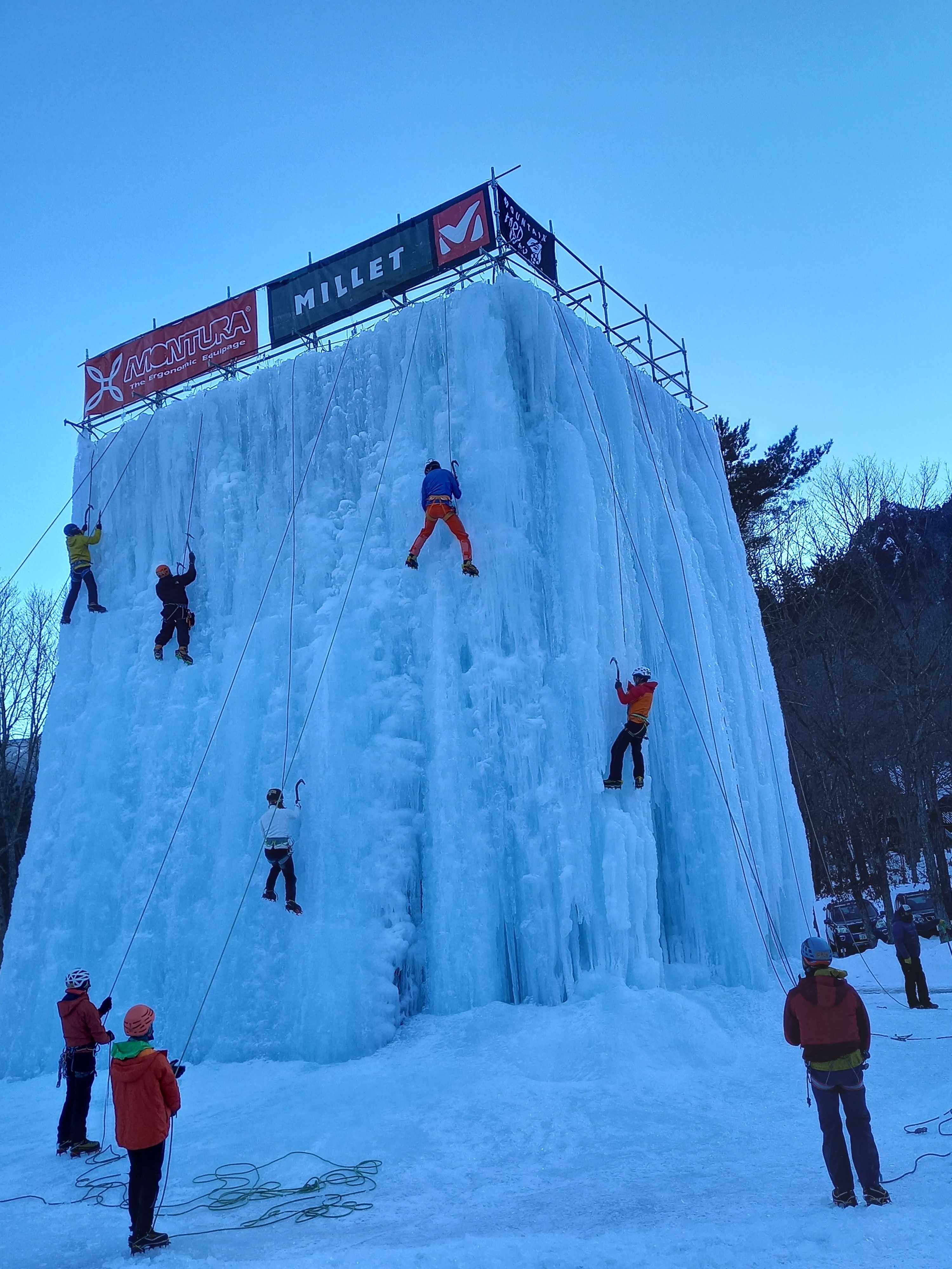 久しぶりなので最初は体がなかなか氷になじまなかったが昇ってるうちに慣れてきた。初日なのであまり頑張りすぎないようにと思っていたが、結局半日で6本も昇っていた。参加者の中に数年前中央アルプスでご一緒したKさんがいたのでとても嬉しく、旧交を温めた。