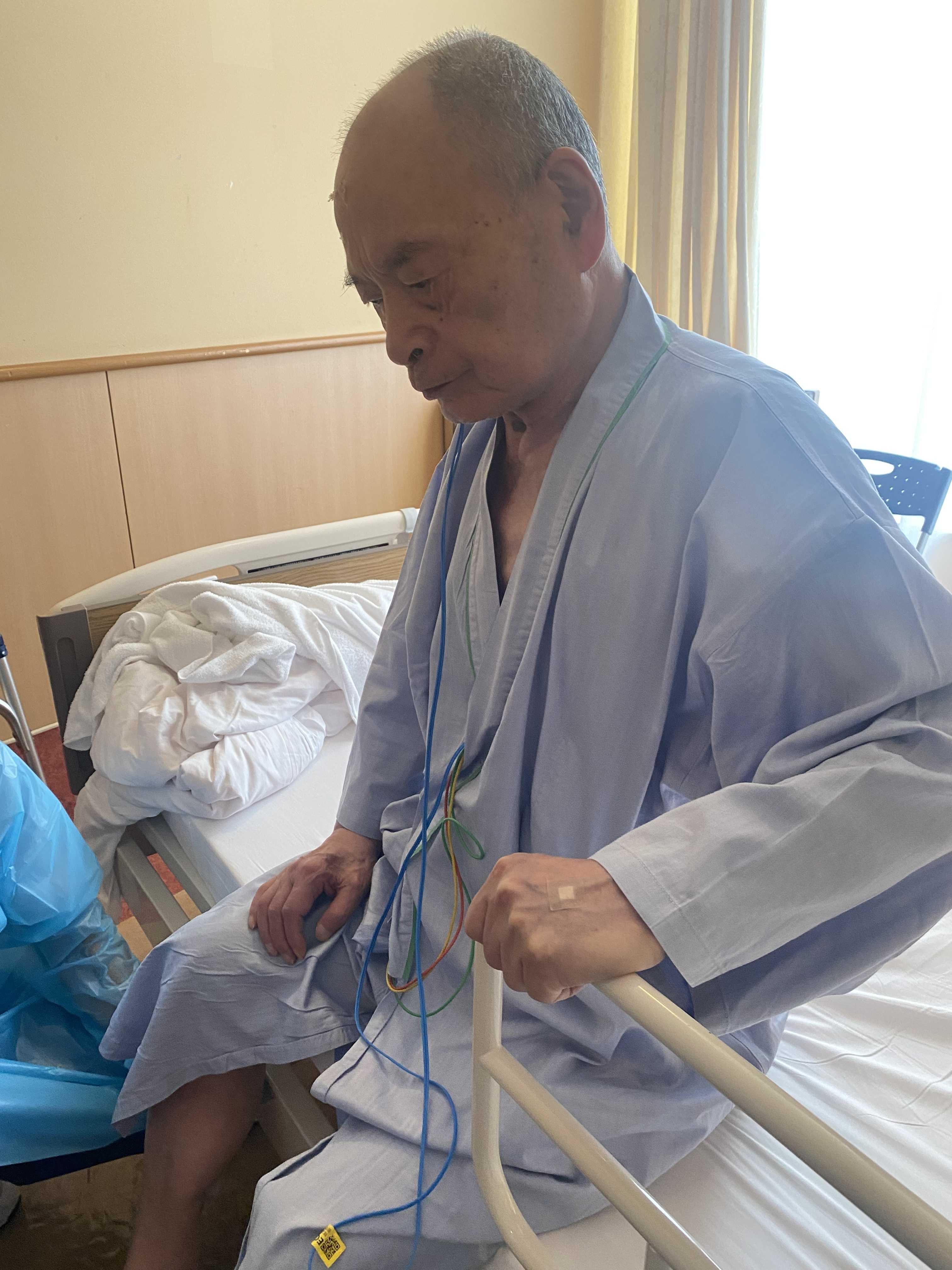 6月26日に入院して以来、初めて夫の姿を見た。コロナで隔離病室なのでブルーの防護服にマスクなど完全防護して入室。夫は話に聞くよりは顔色も悪くなく、瘦せ衰えてはいなかった。