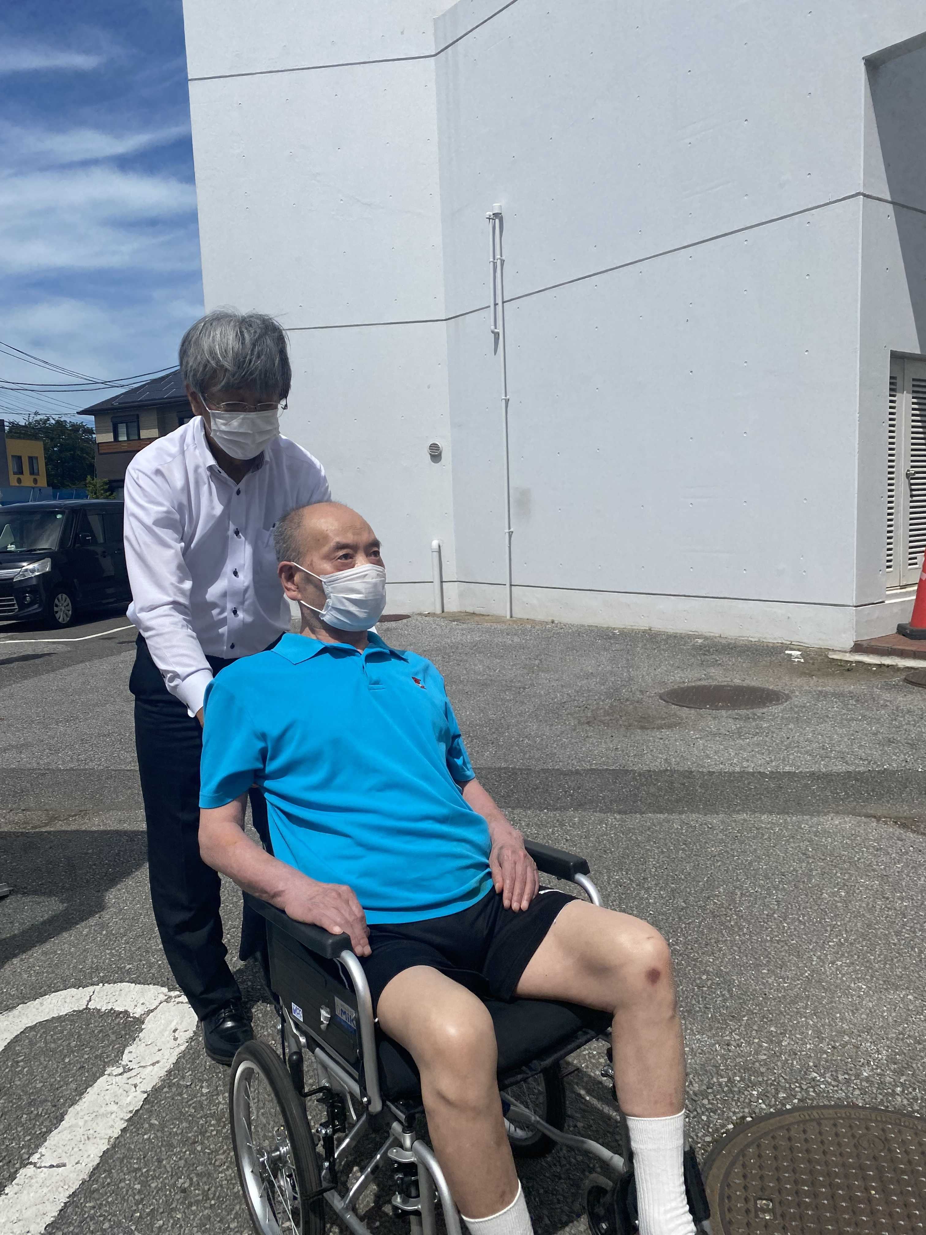その後、病棟で荷物の整理などをし、着替えさせてもらって、介護タクシーに乗って薬円台リハビリテーション病院前まで移動した。