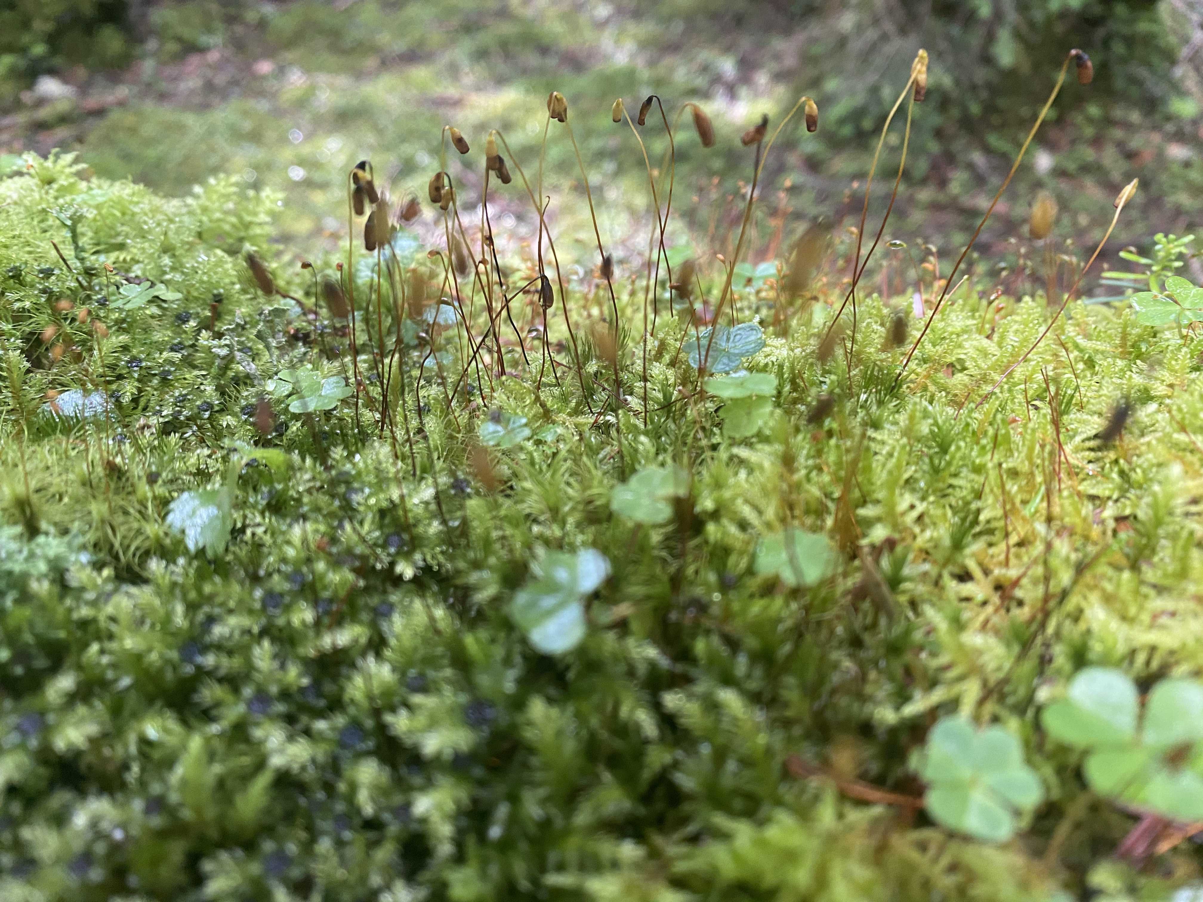 反対に北八ヶ岳では樹林帯の足元を埋め尽くす苔が見事でした。これまで苔には特に強い関心を払わなかったのですが、今回の北八つでは苔の勢力にも驚嘆させられました。ここでその一部をします。(花名は不正確です)