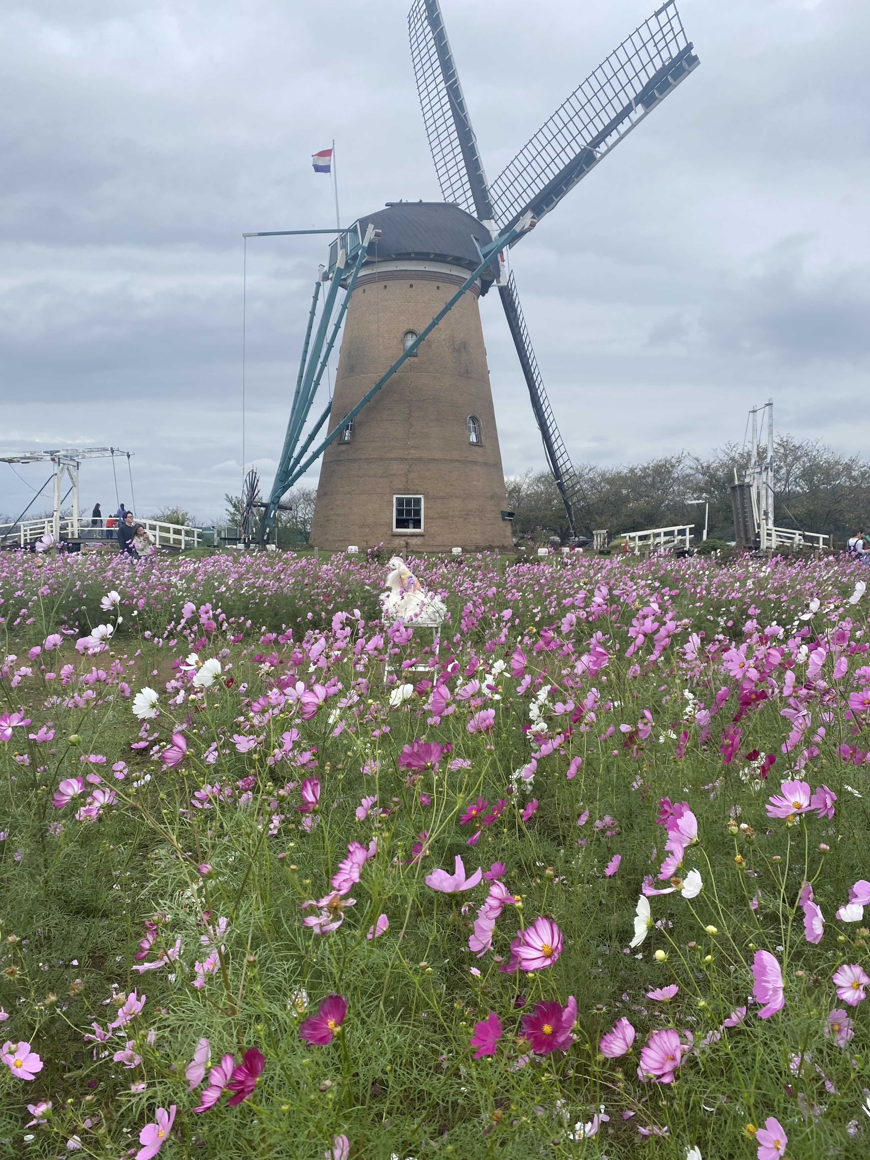 広場中央にはオランダの風車が回っていたし、跳ね橋もあって雰囲気が良かった。跳ね橋はゴッホの「アルルの跳ね橋」の絵を思い出させてくれる。